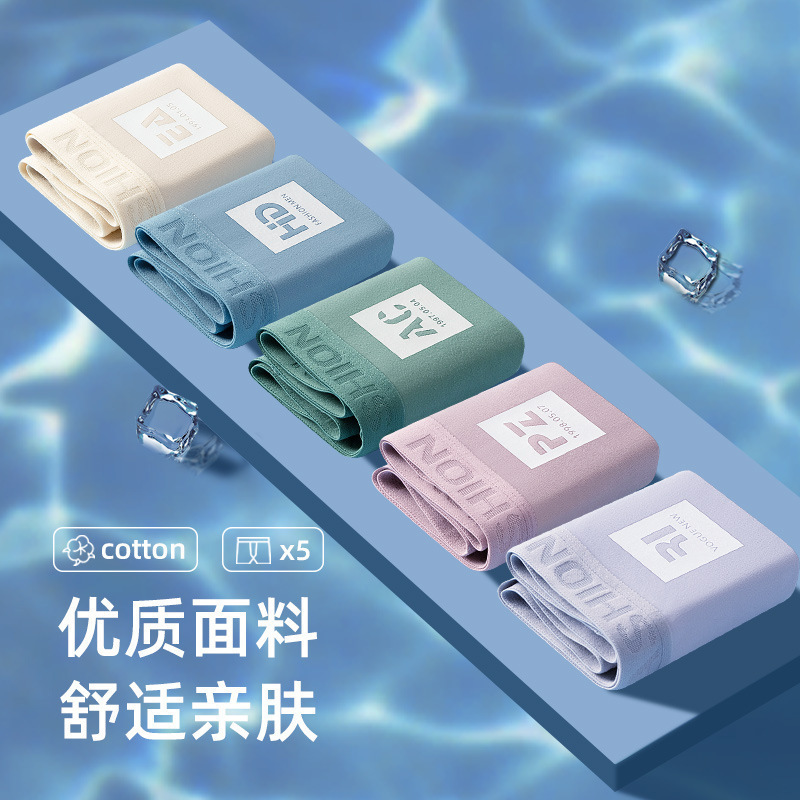 青年男士内裤透气吸汗平角裤运动时尚印花大码中腰四角底男士裤头