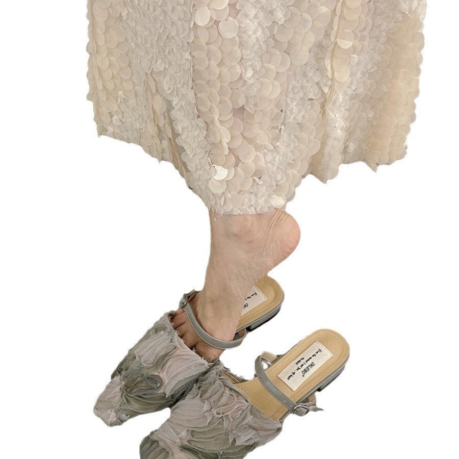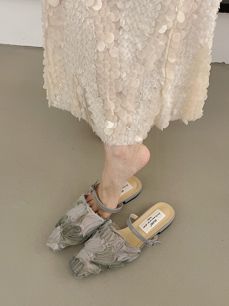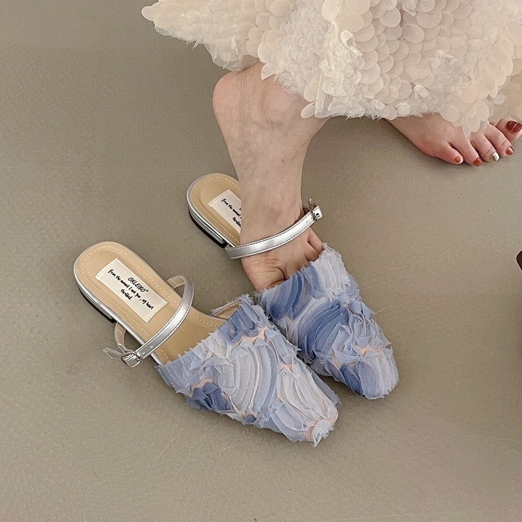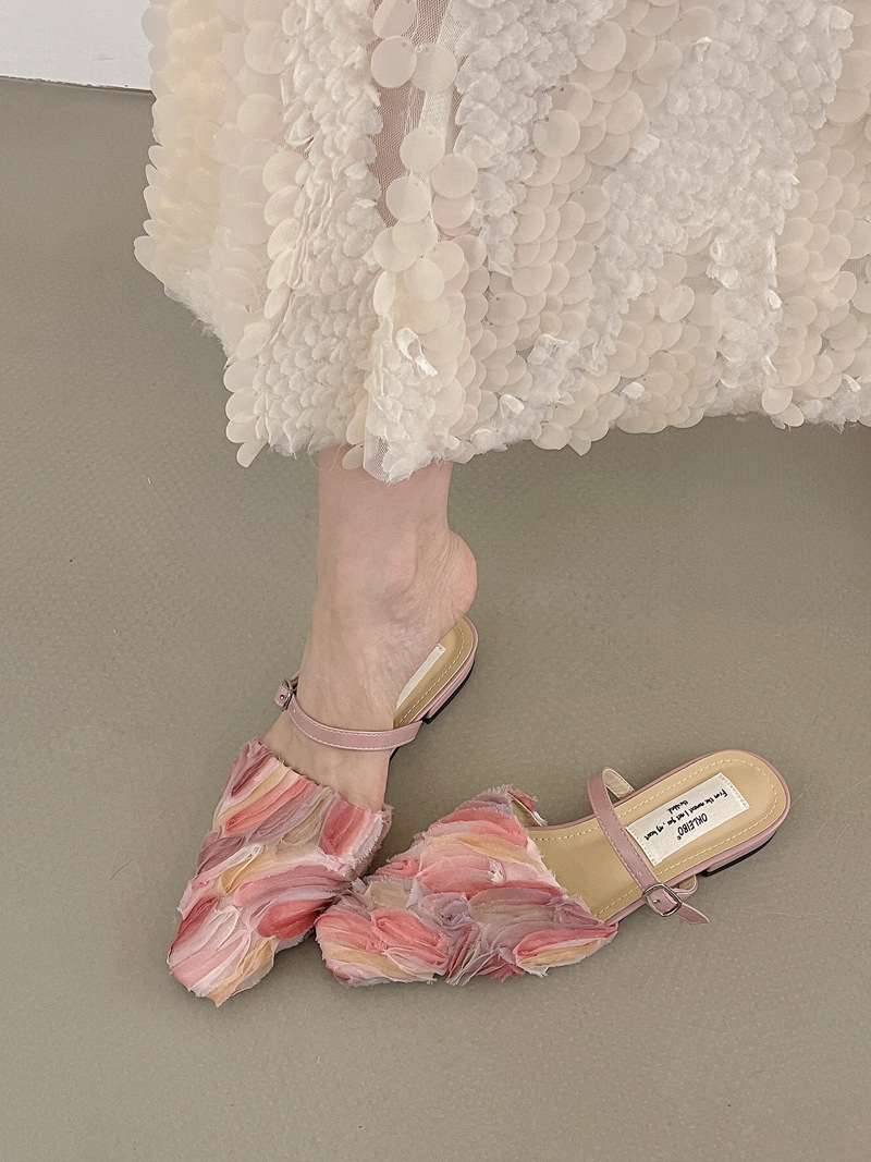 浅口一字扣带玛丽珍单鞋法式赫本风方头拼色国风新中式女半拖鞋子
