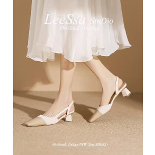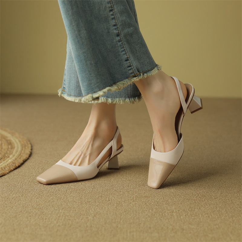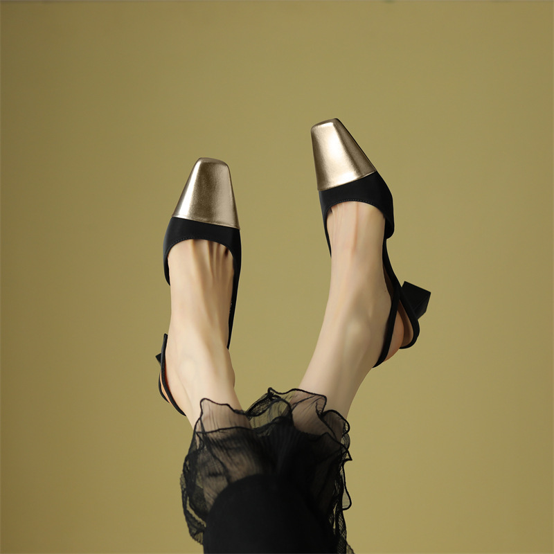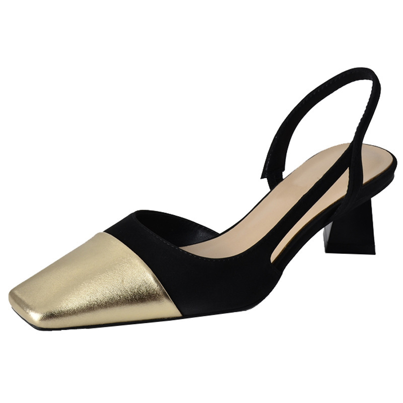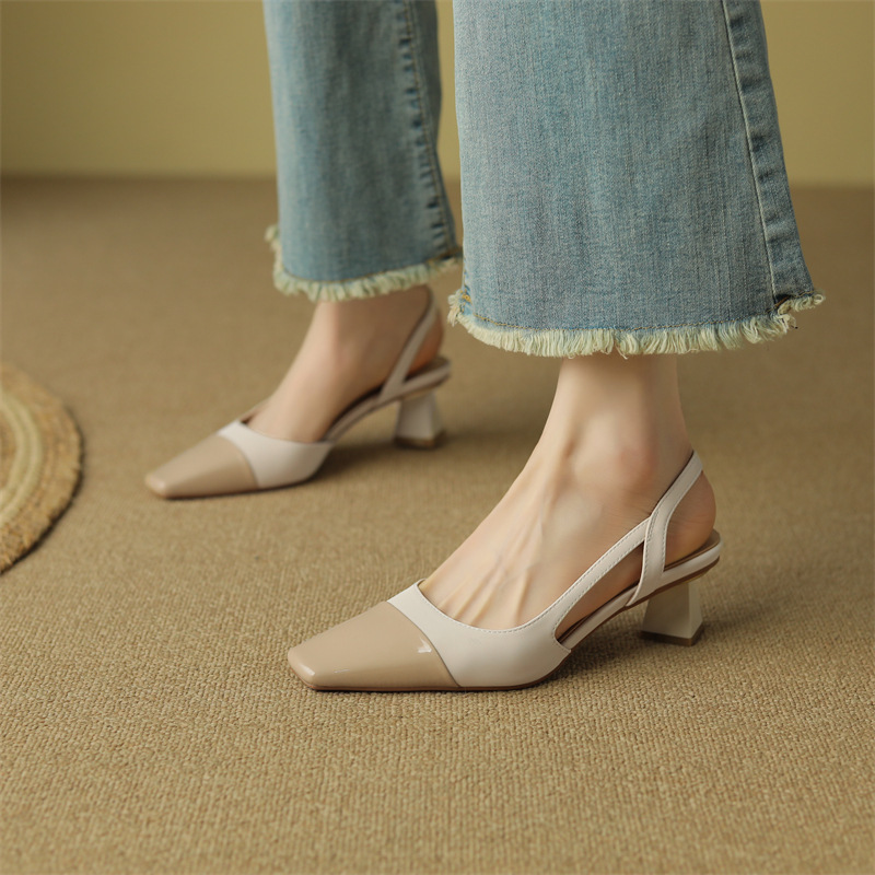 法式拼接后空凉鞋仙女鞋子高跟鞋夏季新款方头气质单鞋