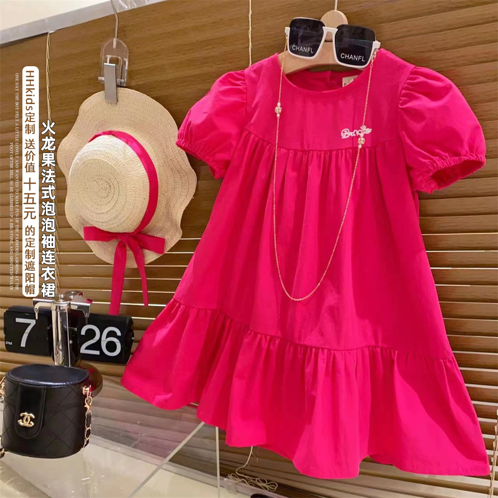 新品裙子泡泡短袖洋气甜美公主裙2025夏装韩版纯色连衣裙