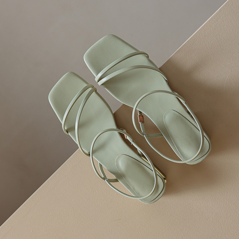 夏季新款简约方头细带凉鞋女平底一字带露趾罗马鞋女