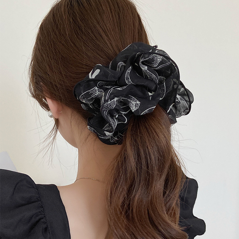 新中式复古冷清感印花大肠发圈水墨画马尾优雅丸子头发绳头花发饰