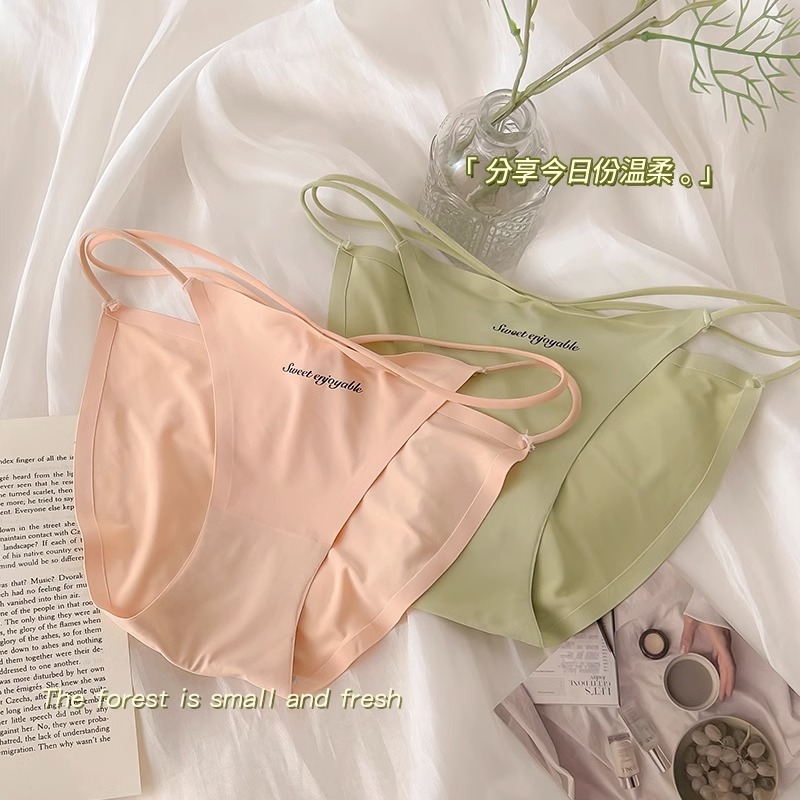 无痕内裤女冰丝一片式性感镂空细带低腰弹力不勒亲肤速干透 气裤