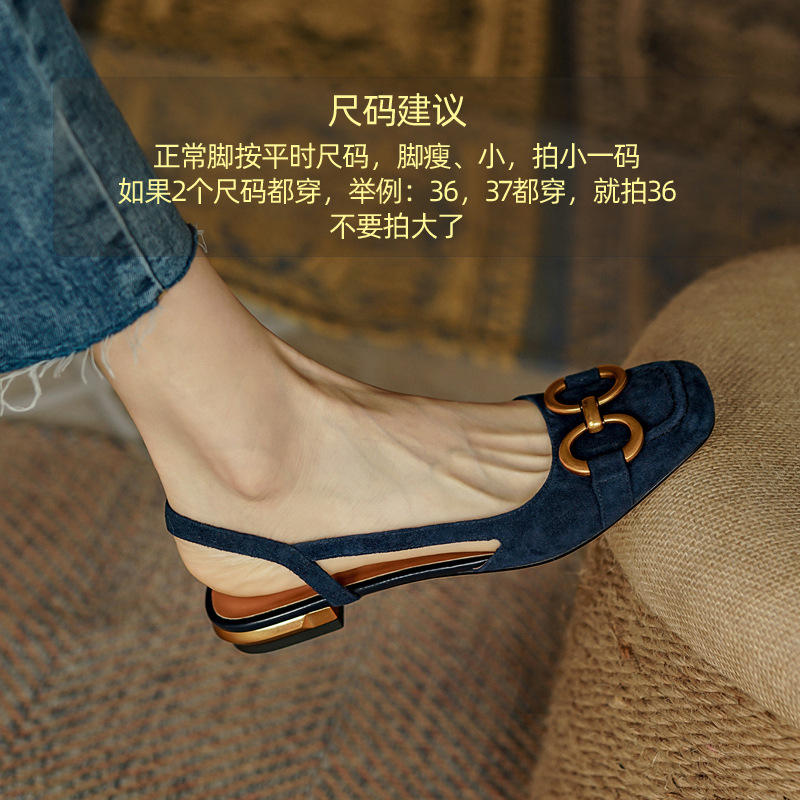 新款平底凉鞋女夏包头粗跟马衔扣低跟单鞋