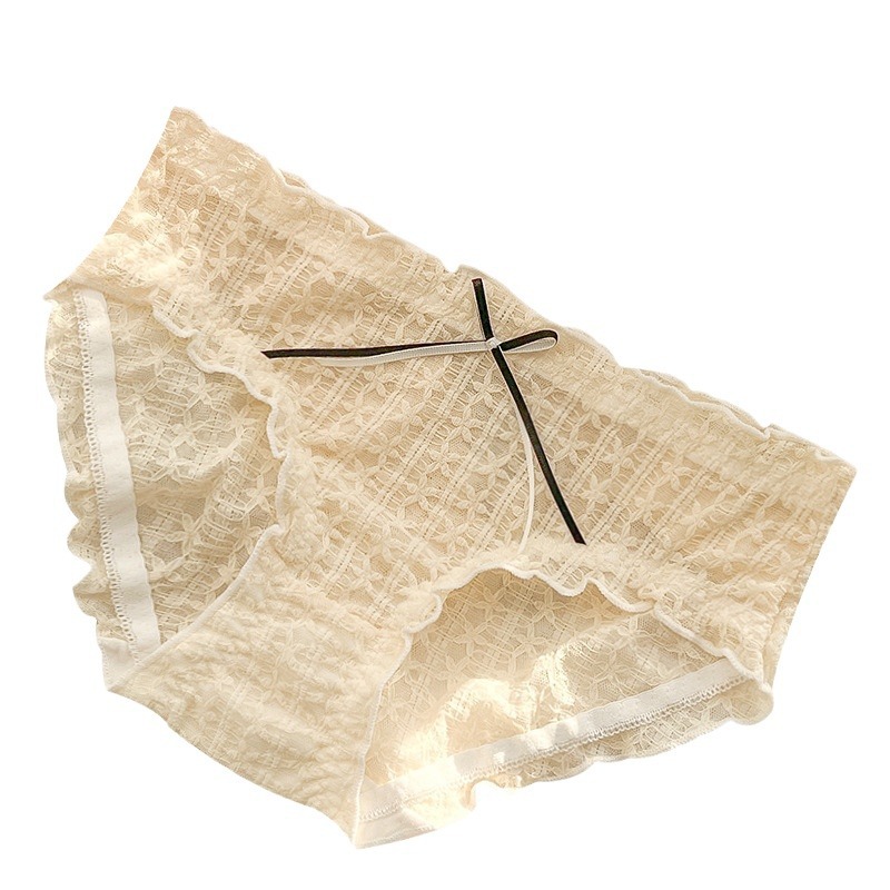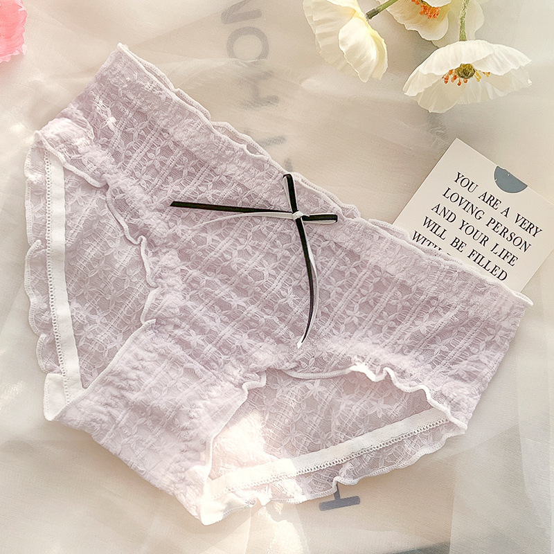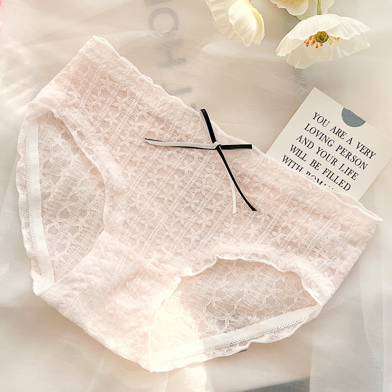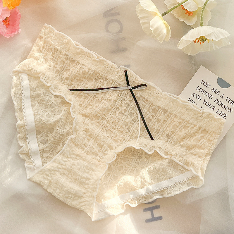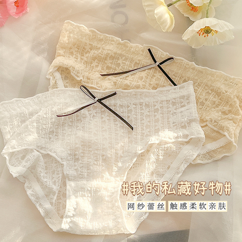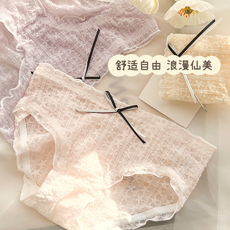 爆款日系百搭蝴蝶结蕾丝内裤少女透明镂空可爱甜美性感棉裆三角裤