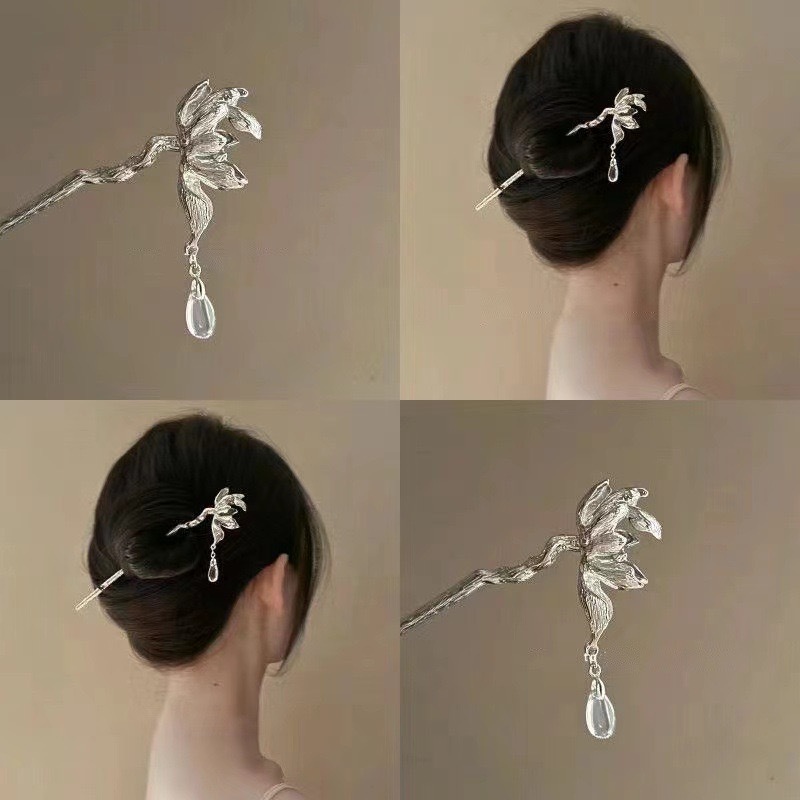 ins新中式莲花水滴发簪女禅意清冷簪子凤栖花高级感小众气质国风