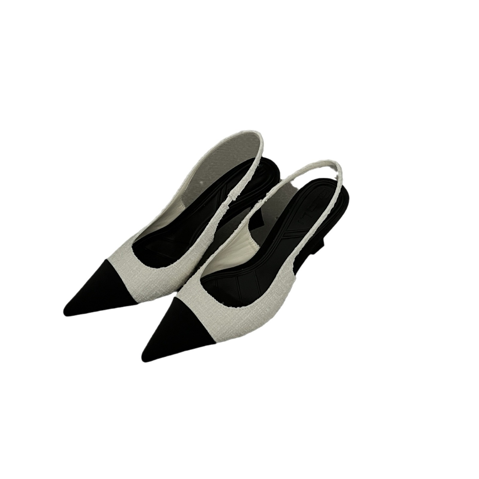 尖头包头拼色单鞋后空一字带高跟细跟女凉鞋