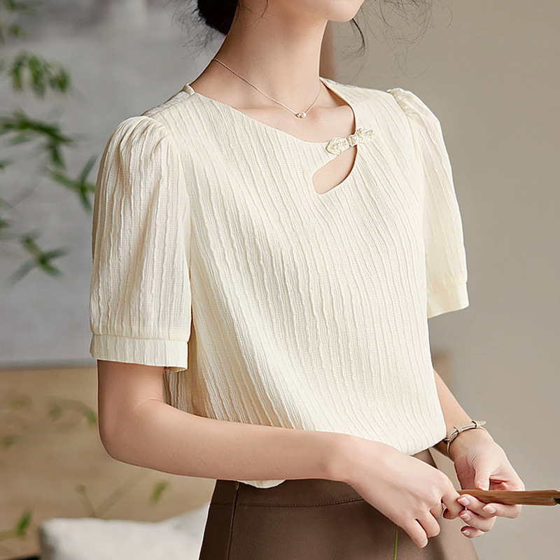 肌理感新中式盘扣衬衫女夏季新款优雅气质不规则镂空设计上衣