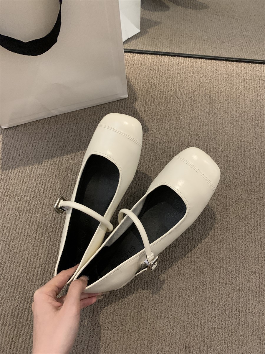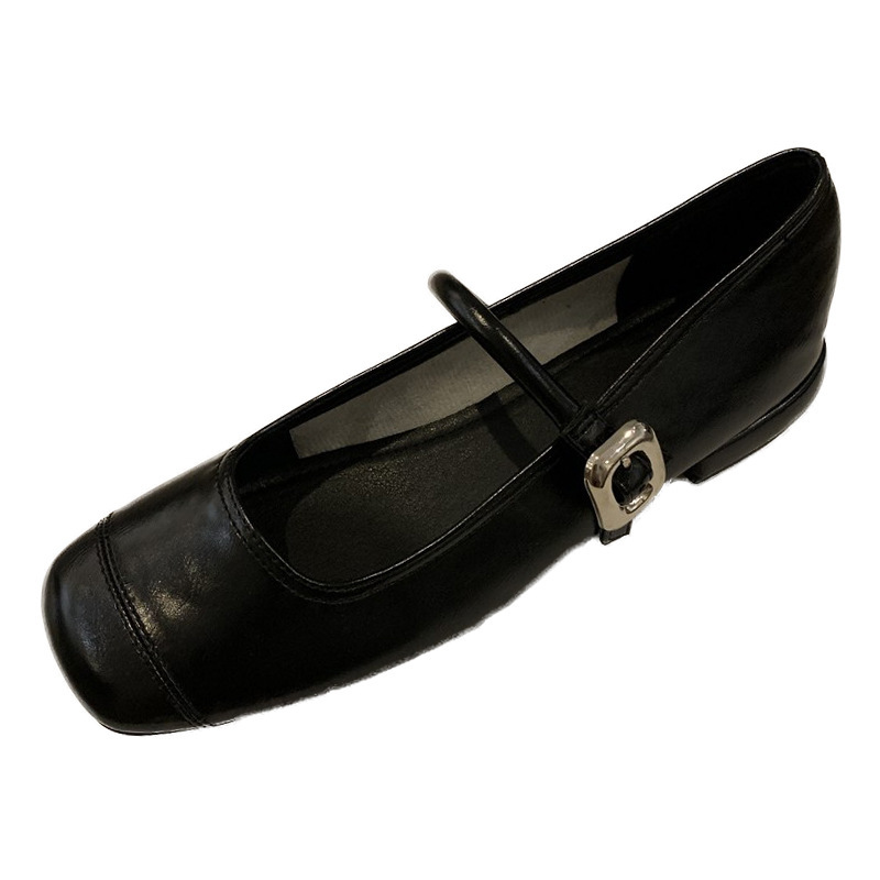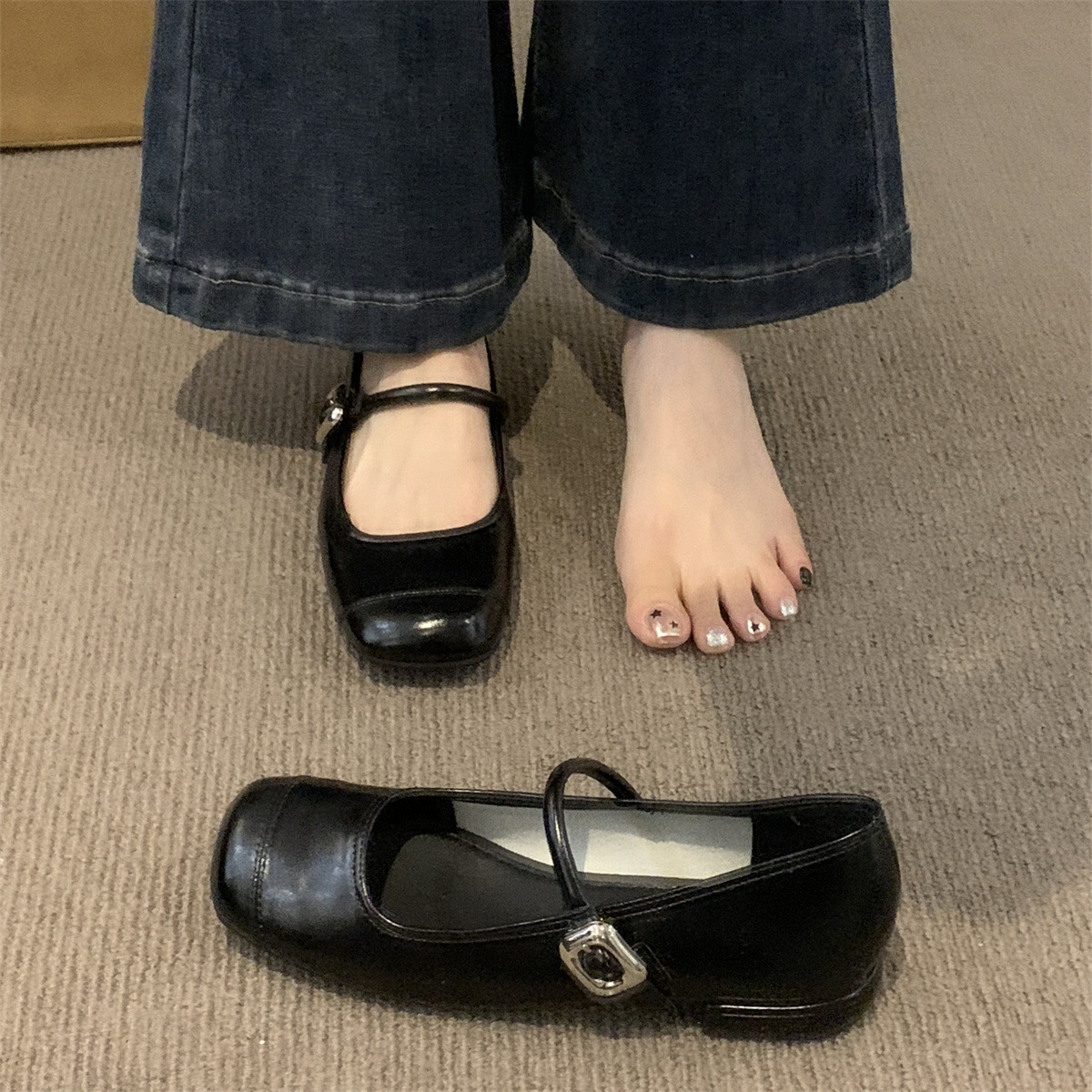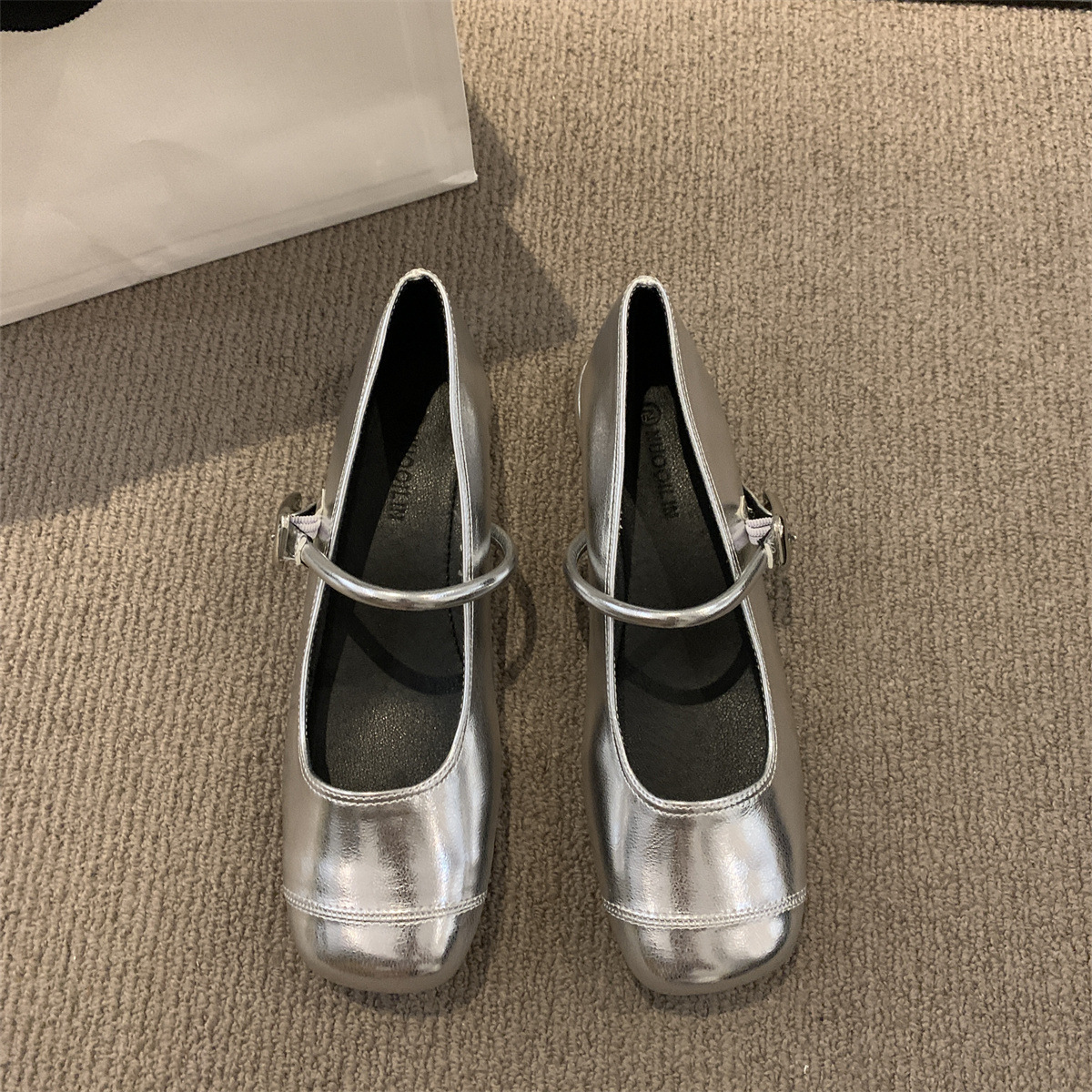 银色玛丽珍鞋女鞋子春秋新款浅口粗跟一字带法式晚风单鞋