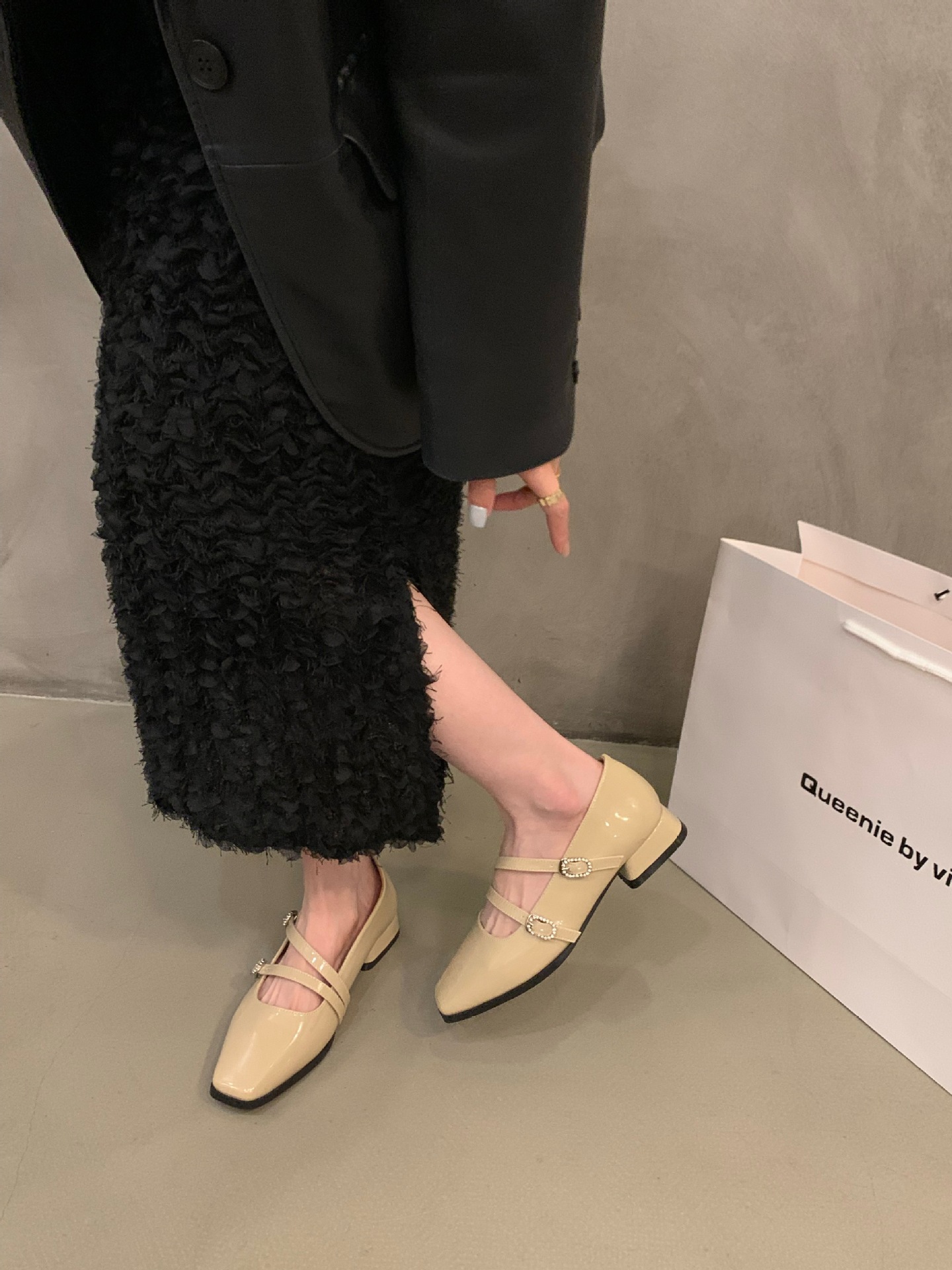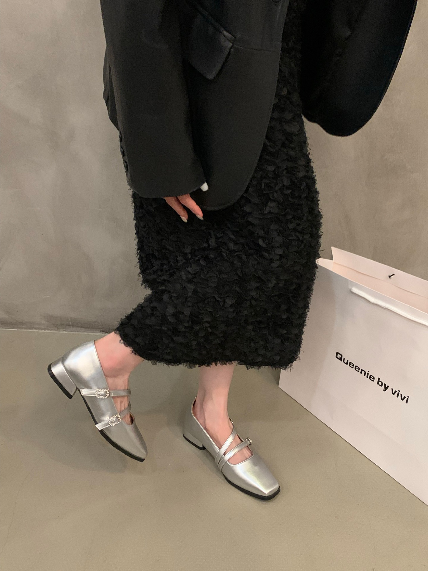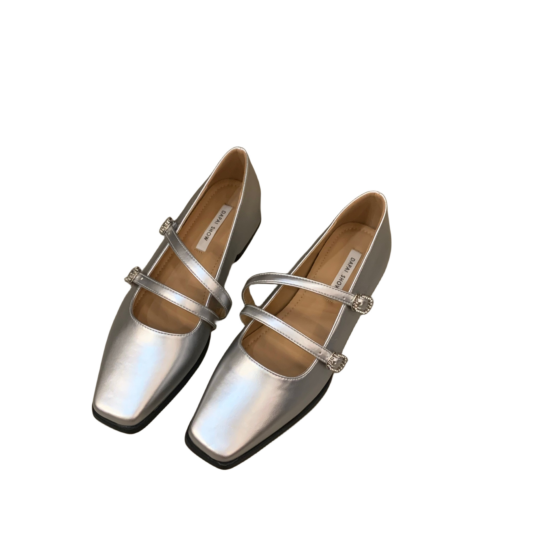 粗跟方头银色玛丽珍小皮鞋女鞋子新款夏季黑色春秋法式单鞋