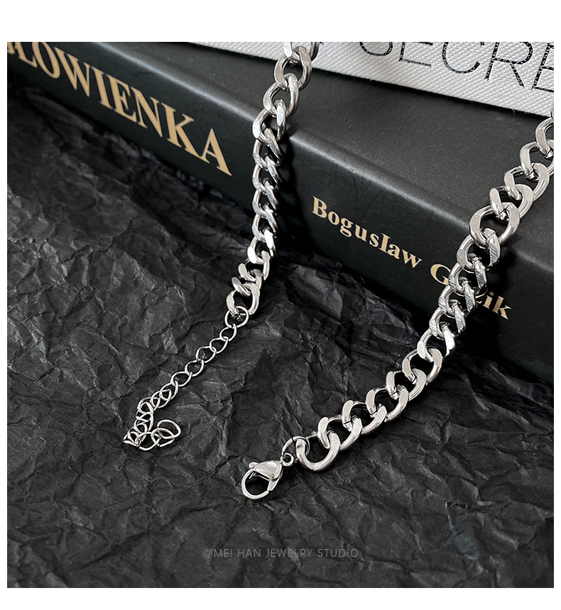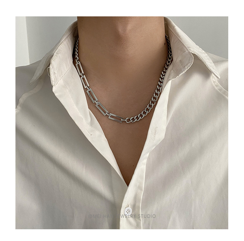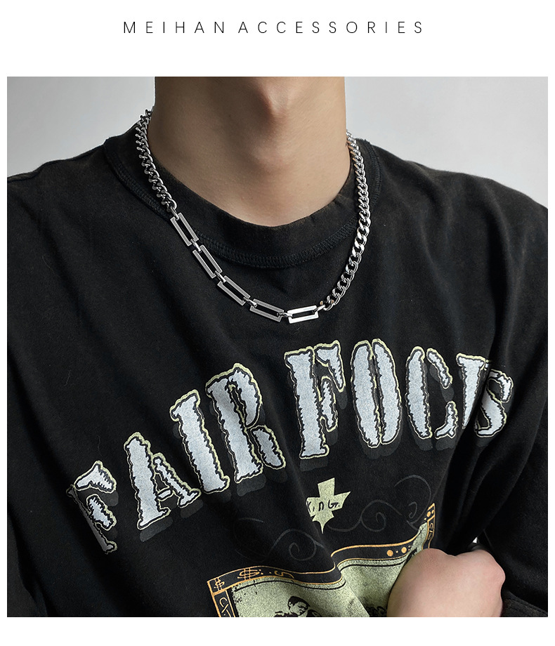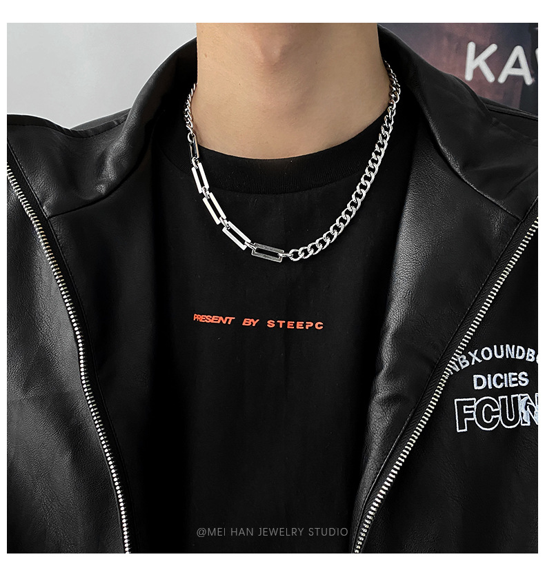嘻哈拼接钛钢项链男潮ins冷淡风古巴粗链条街头小众设计蹦迪配饰