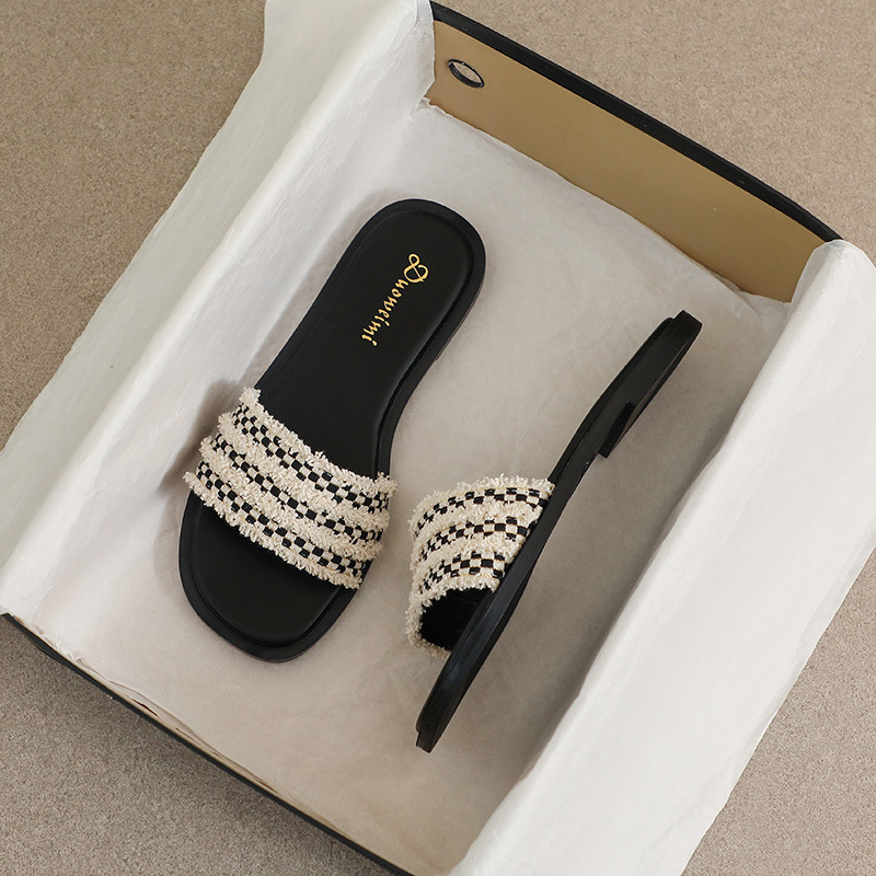 平底法式一字拖鞋女夏外穿新款时尚海边沙滩凉拖大码鞋41一43
