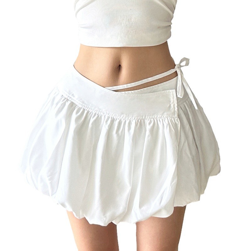 夏季新款设计感绑带镂空不规则腰头半身裙女辣妹显瘦花苞短裙