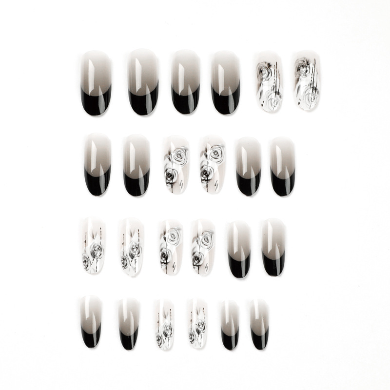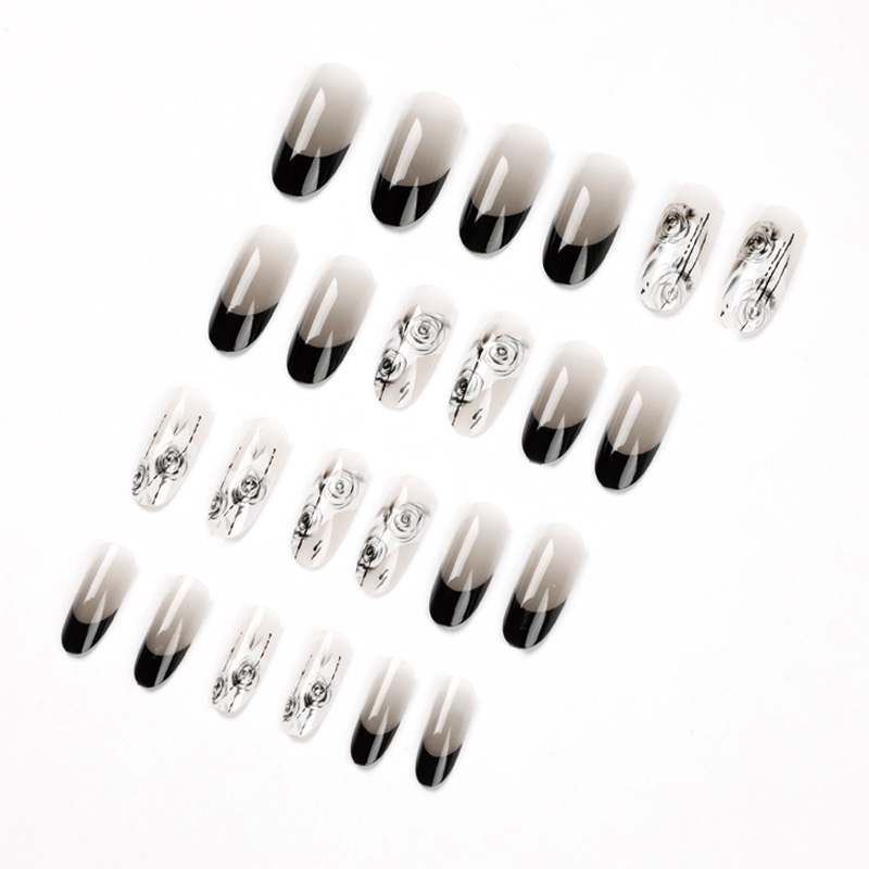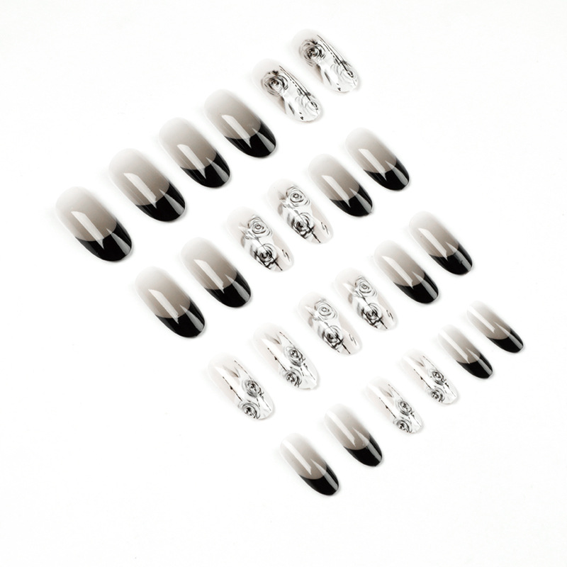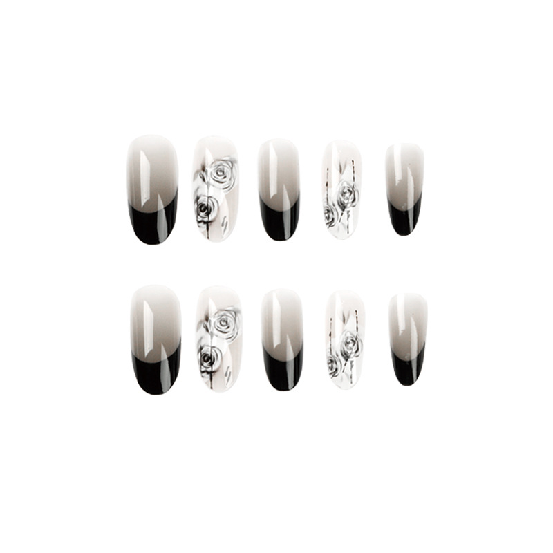 穿戴甲 法式黑边 美甲穿戴甲国风水墨晕染穿戴式美甲甲片