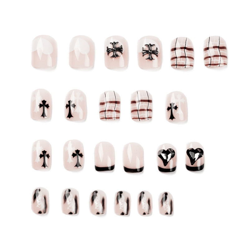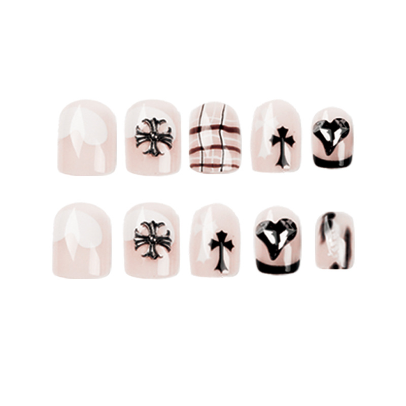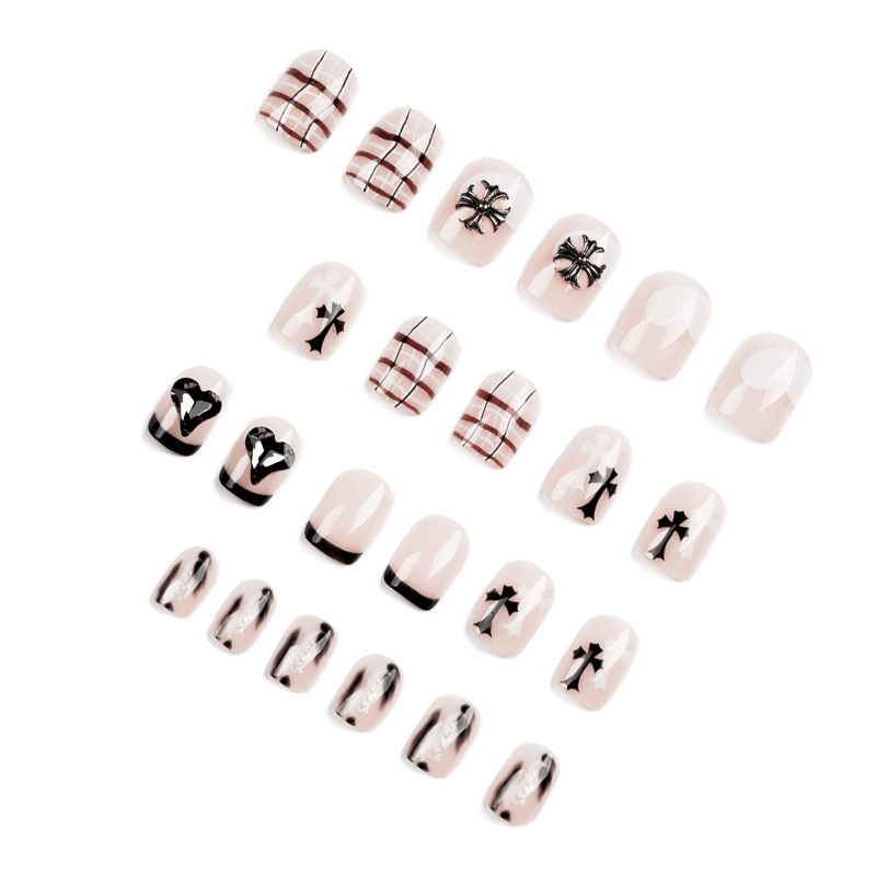 穿戴甲甜酷克罗心辣妹穿戴甲黑色歪心钻穿戴美甲短款