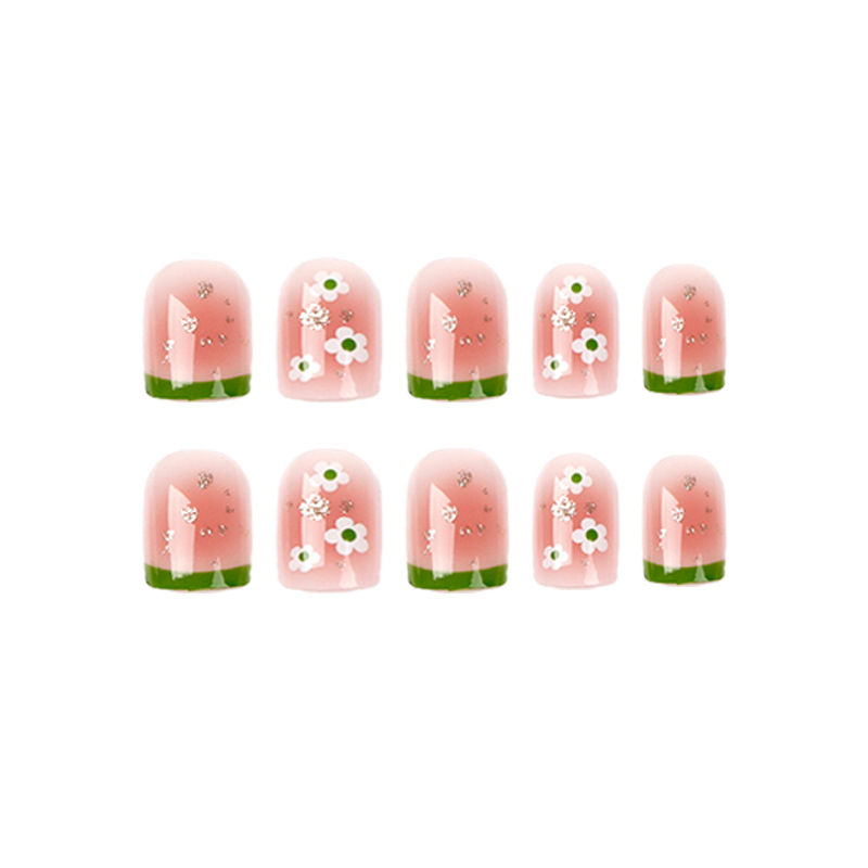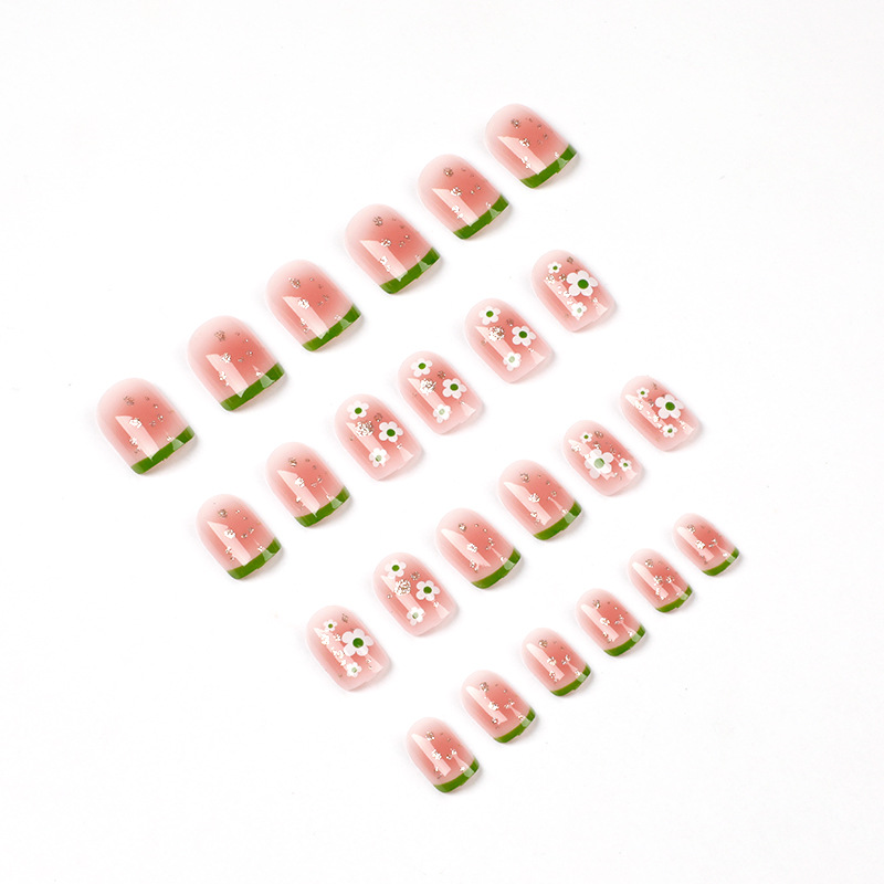 指甲片清新绿小碎花腮红美甲穿戴甲片美甲穿戴甲假指甲