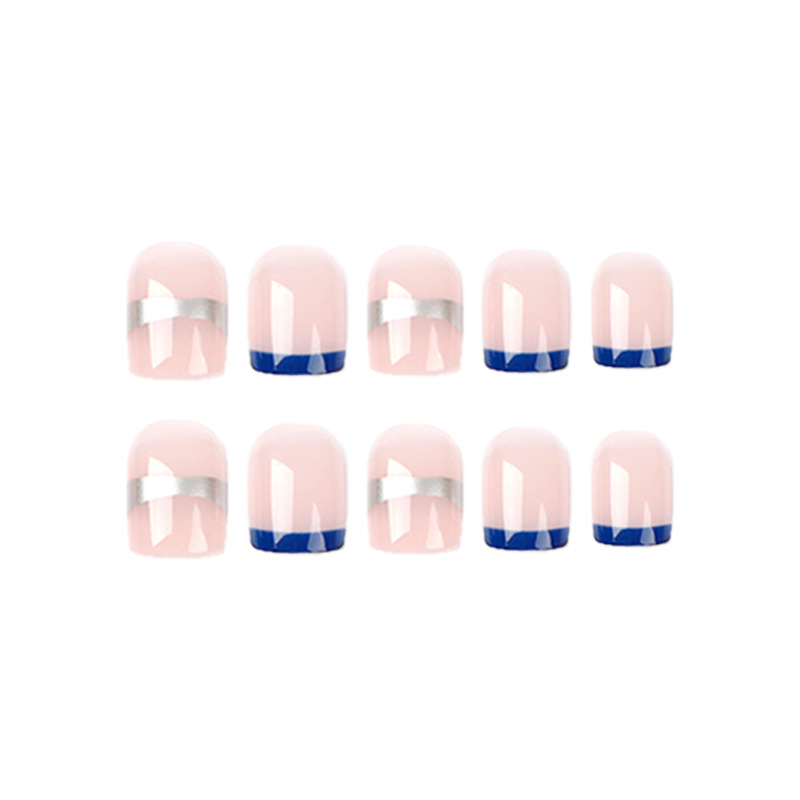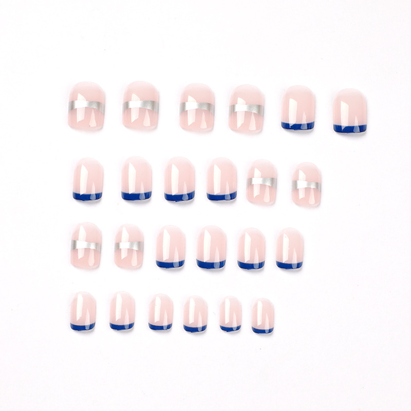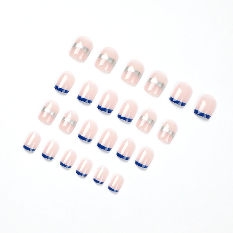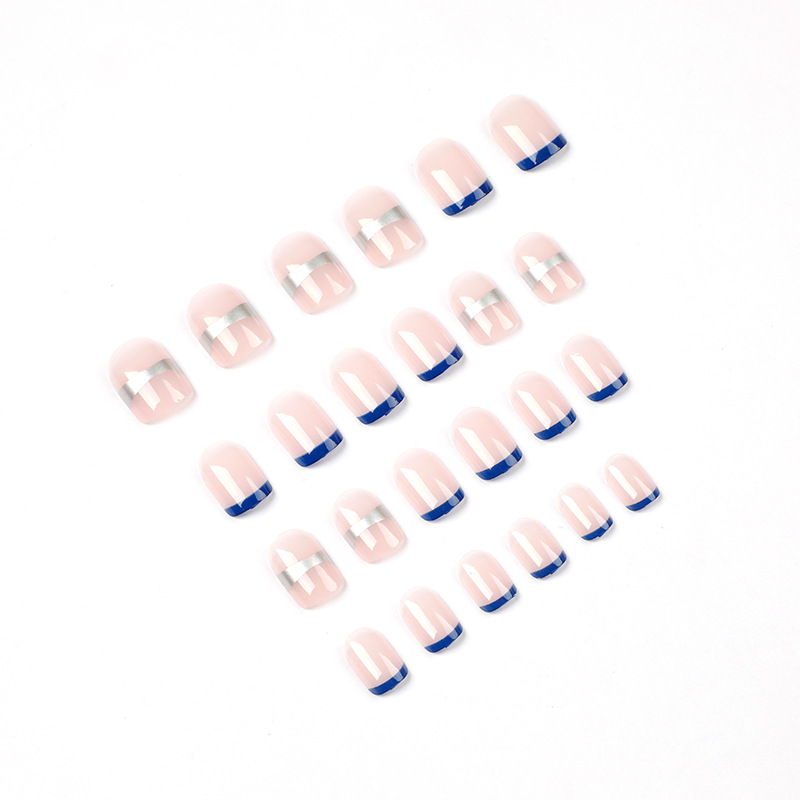 穿戴甲甲片简约蓝边法式短款穿戴甲美甲贴片甲片