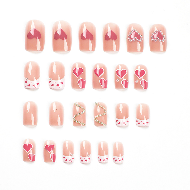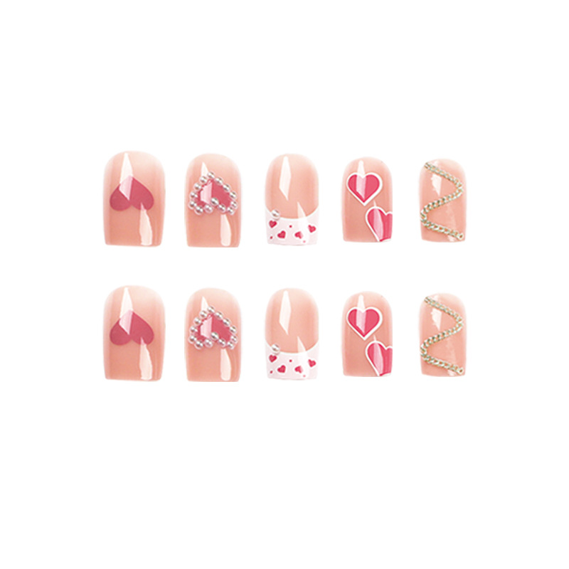 穿戴甲美甲爱心珍珠链条穿戴假甲片美甲穿戴甲片指甲贴片