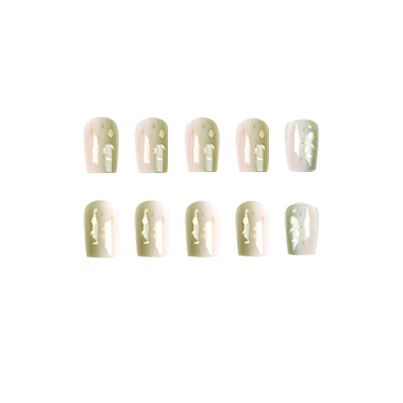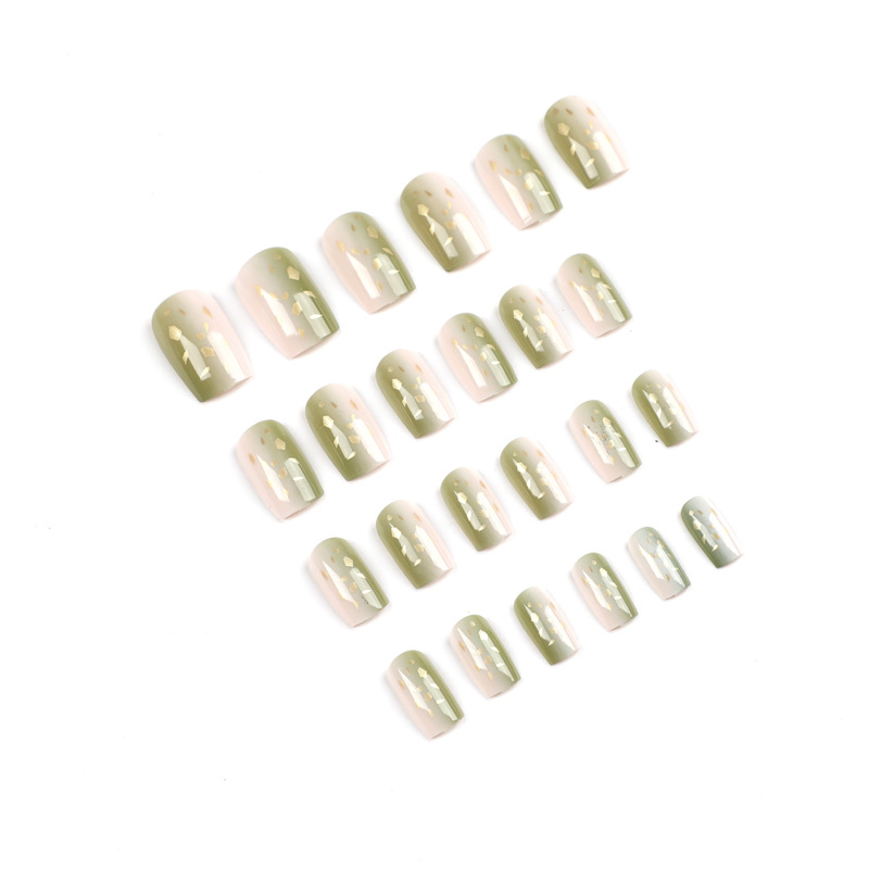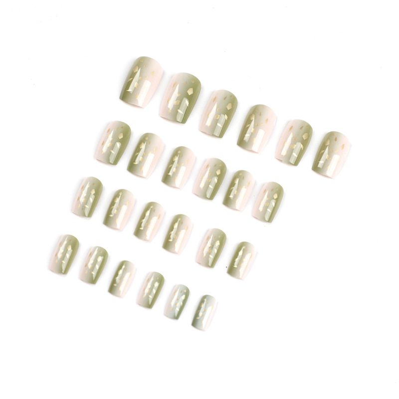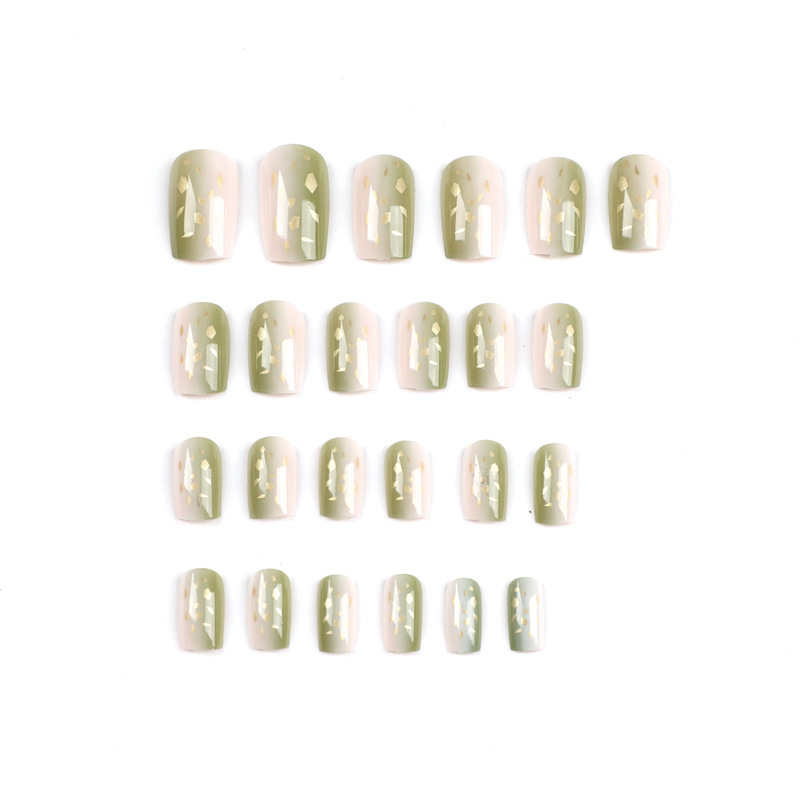 美甲贴片甲片清凉感绿色双拼撞色渐变金箔假指甲片可拆卸
