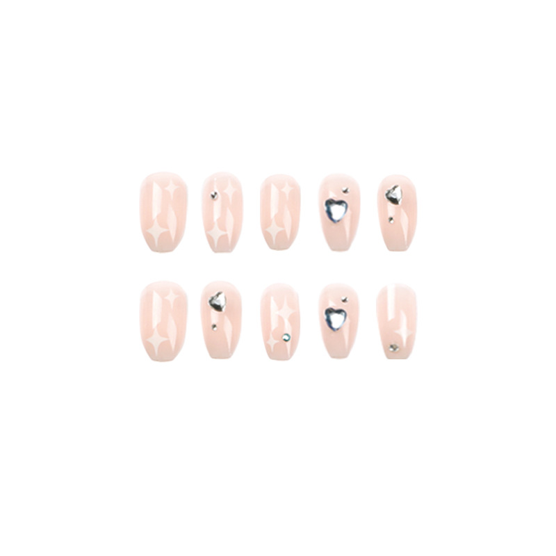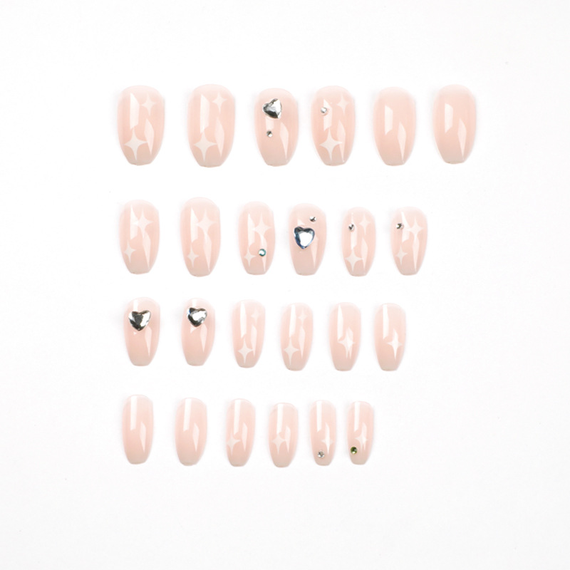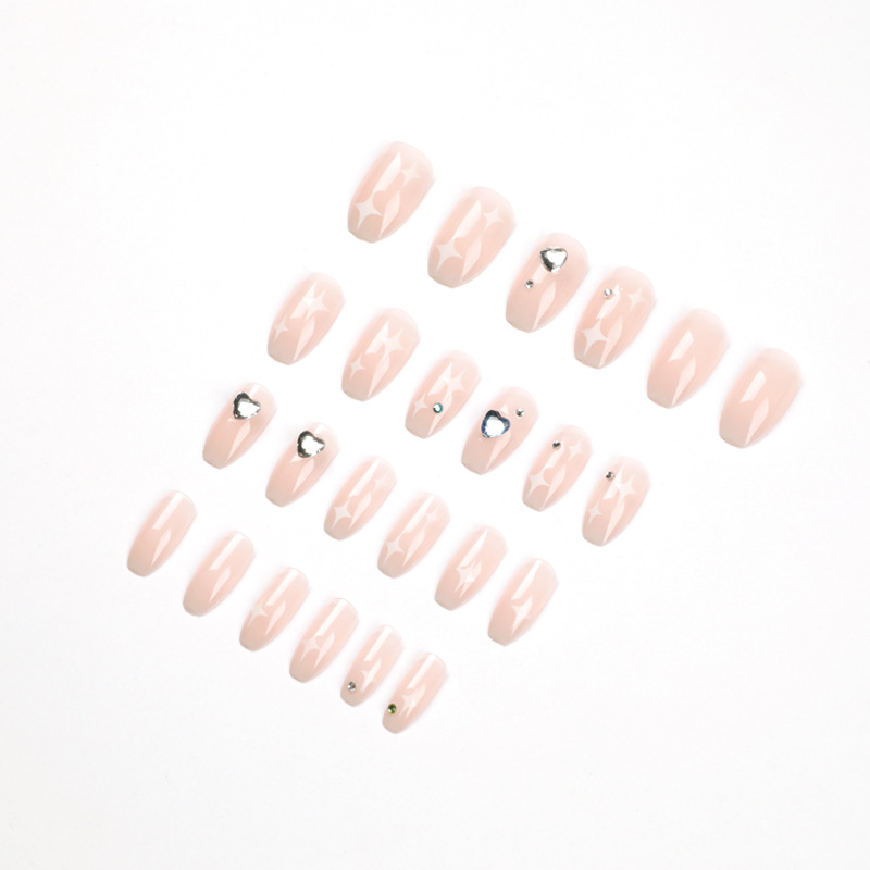 美甲片美甲成品白色星芒小猴子同款可拆卸美甲蓝白爱心水钻指甲片