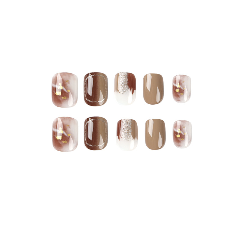 假指甲秋冬穿戴甲棕色晕染金箔美甲贴片甲片果冻胶穿戴甲片