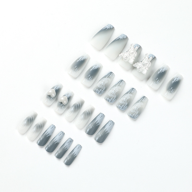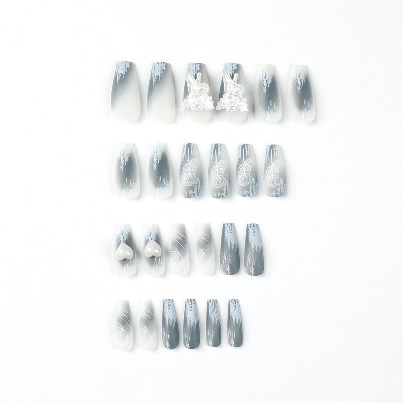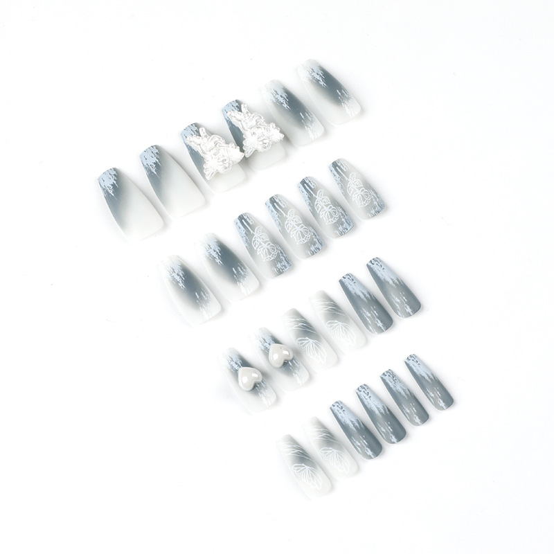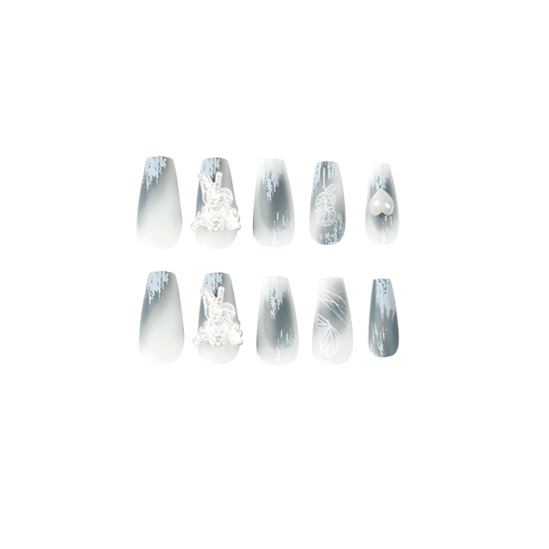 穿戴甲成品磨砂晕染穿戴甲中长款立体小天使白色爱心美甲甲片成品