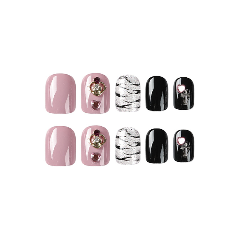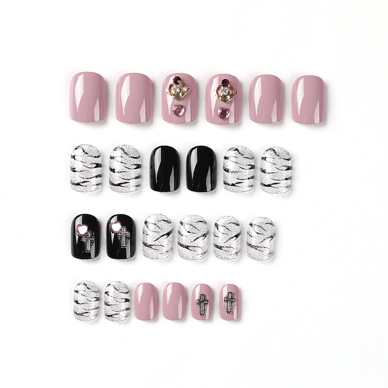 穿戴甲片甜酷黑粉十字架银色闪粉爱心水钻美甲贴片穿戴甲
