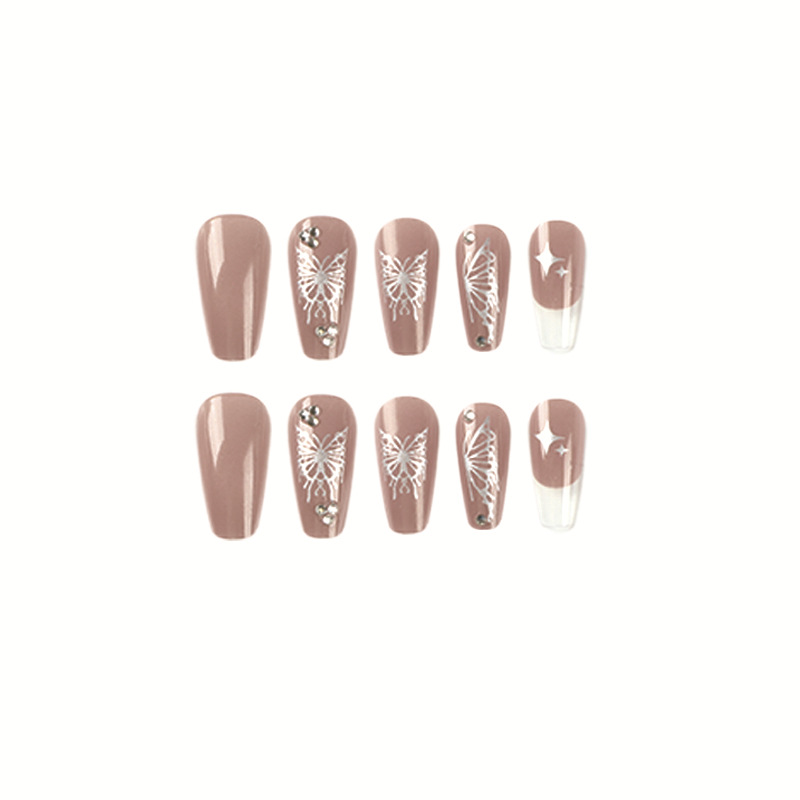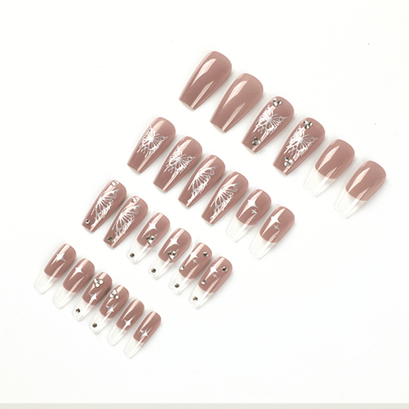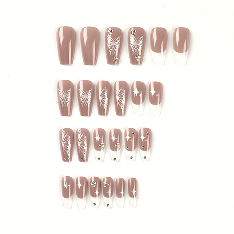 穿戴式指甲贴白色法式银色镂空蝴蝶星芒水钻指甲贴穿戴式美甲甲片