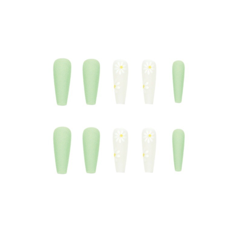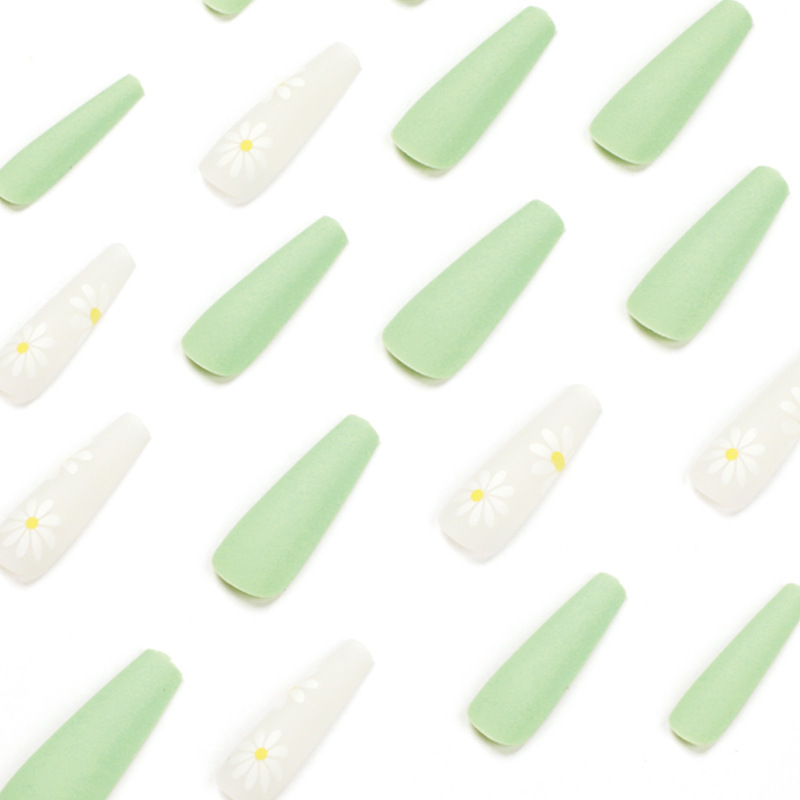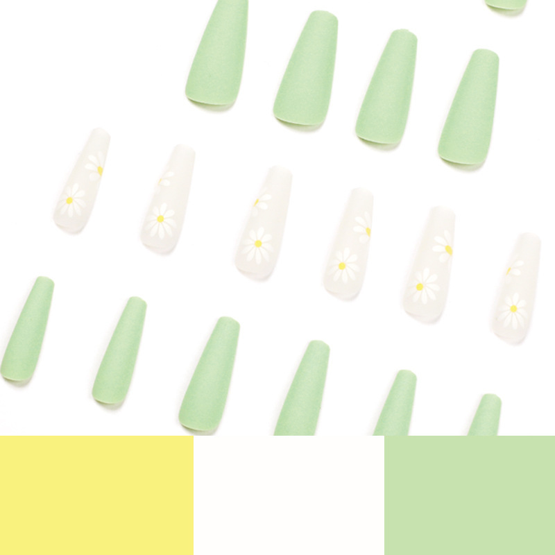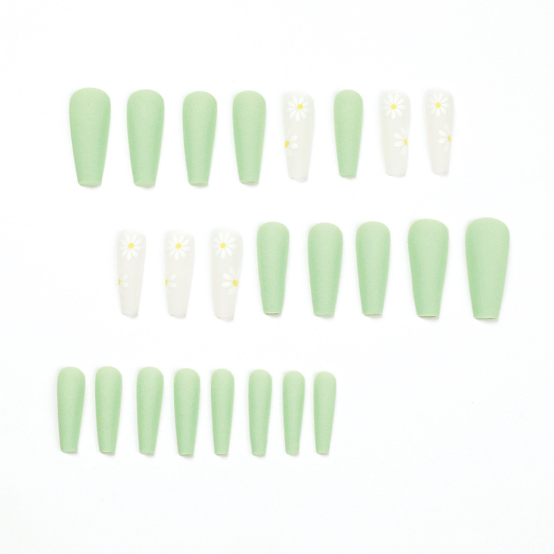 绿色磨砂穿戴甲长款清新花朵纯色美甲指甲贴片成品可拆卸甲片