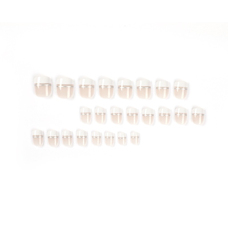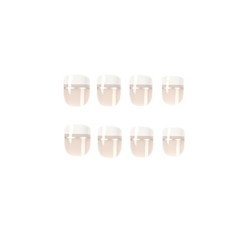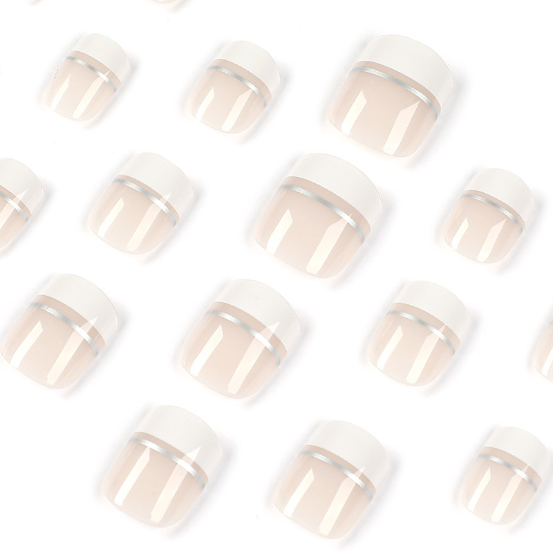穿戴甲法式简约白假指甲美甲银线短款指甲贴片