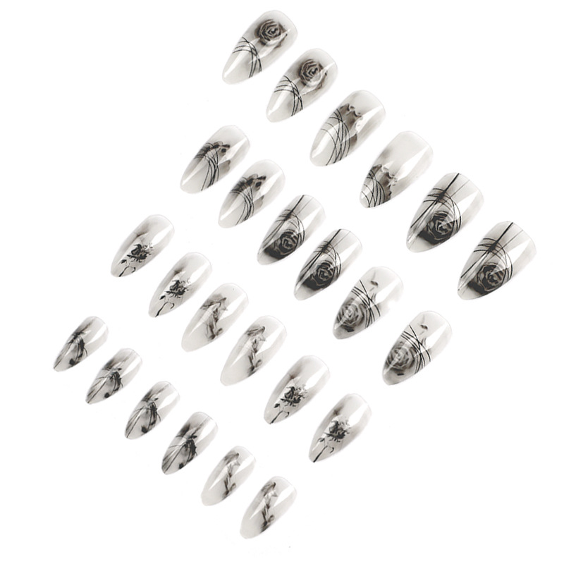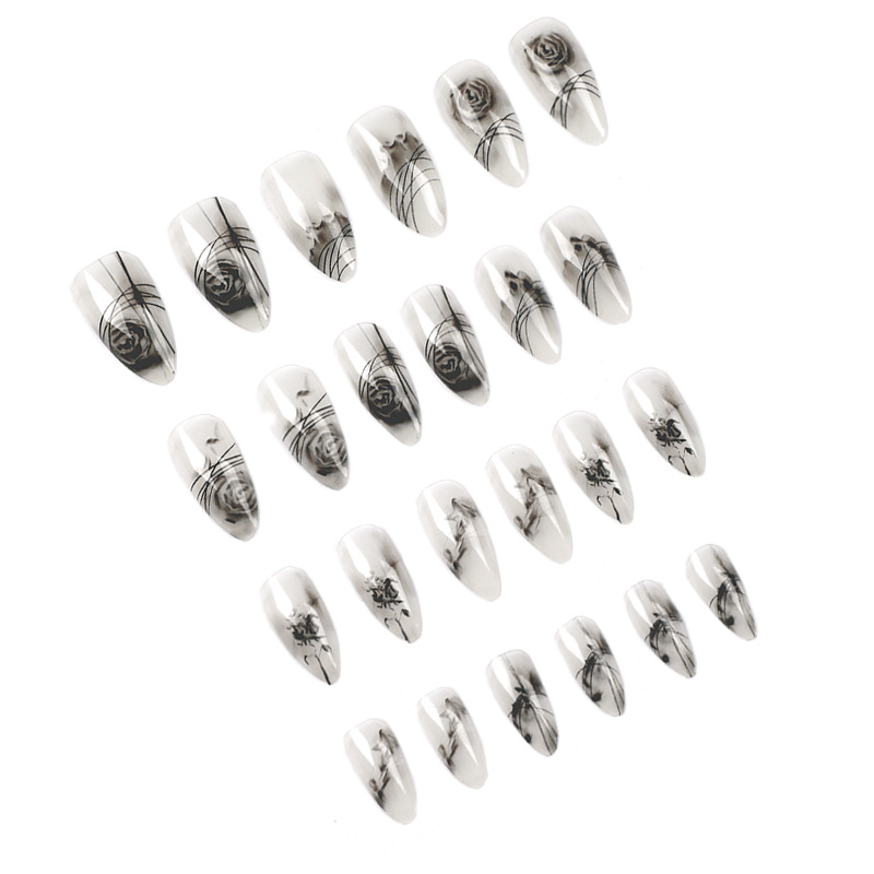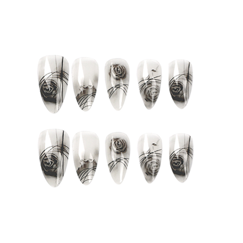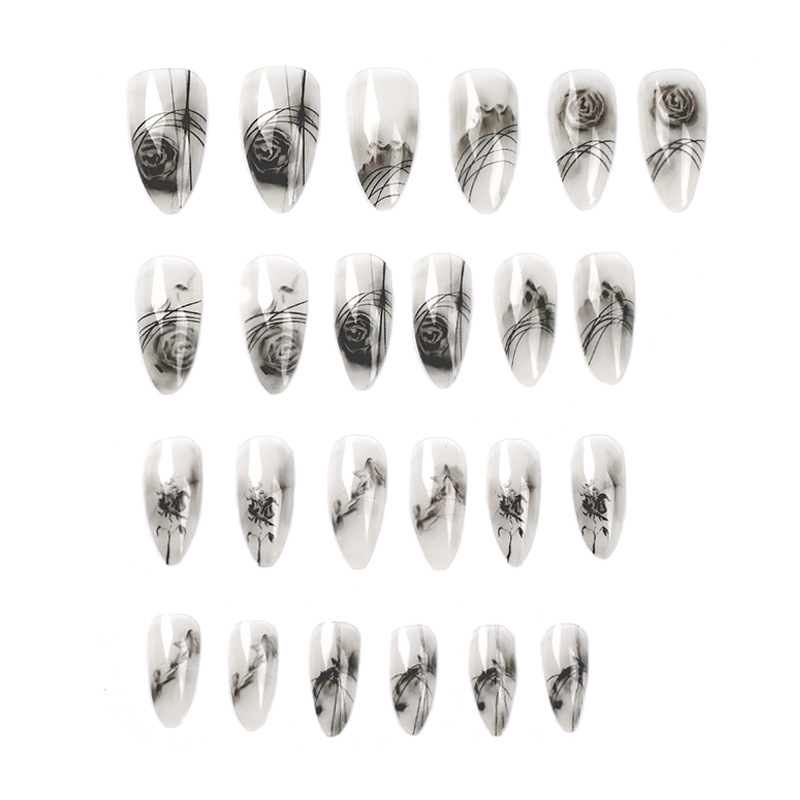 穿戴式美甲黑色玫瑰晕染水彩穿戴甲高级美甲成品指甲贴片