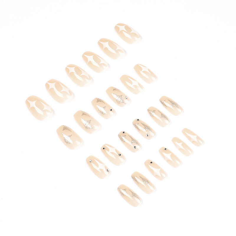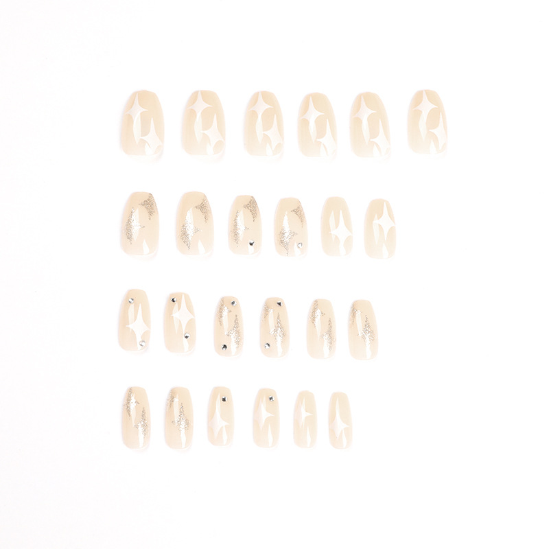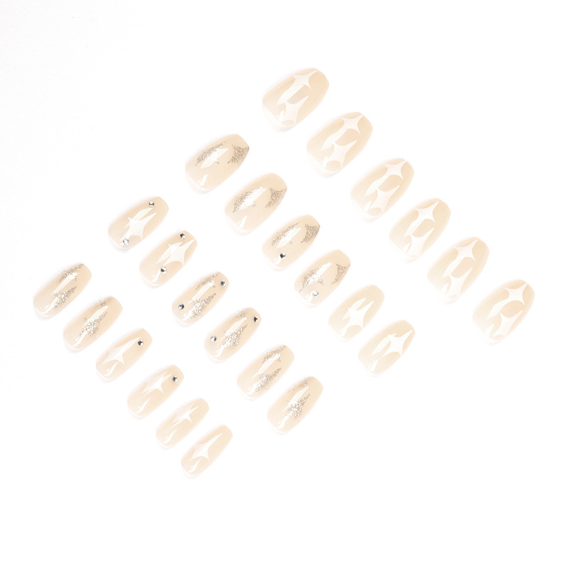 [裸色闪粉水钻白星芒]穿戴甲甲片穿戴式美甲美甲片可拆卸
