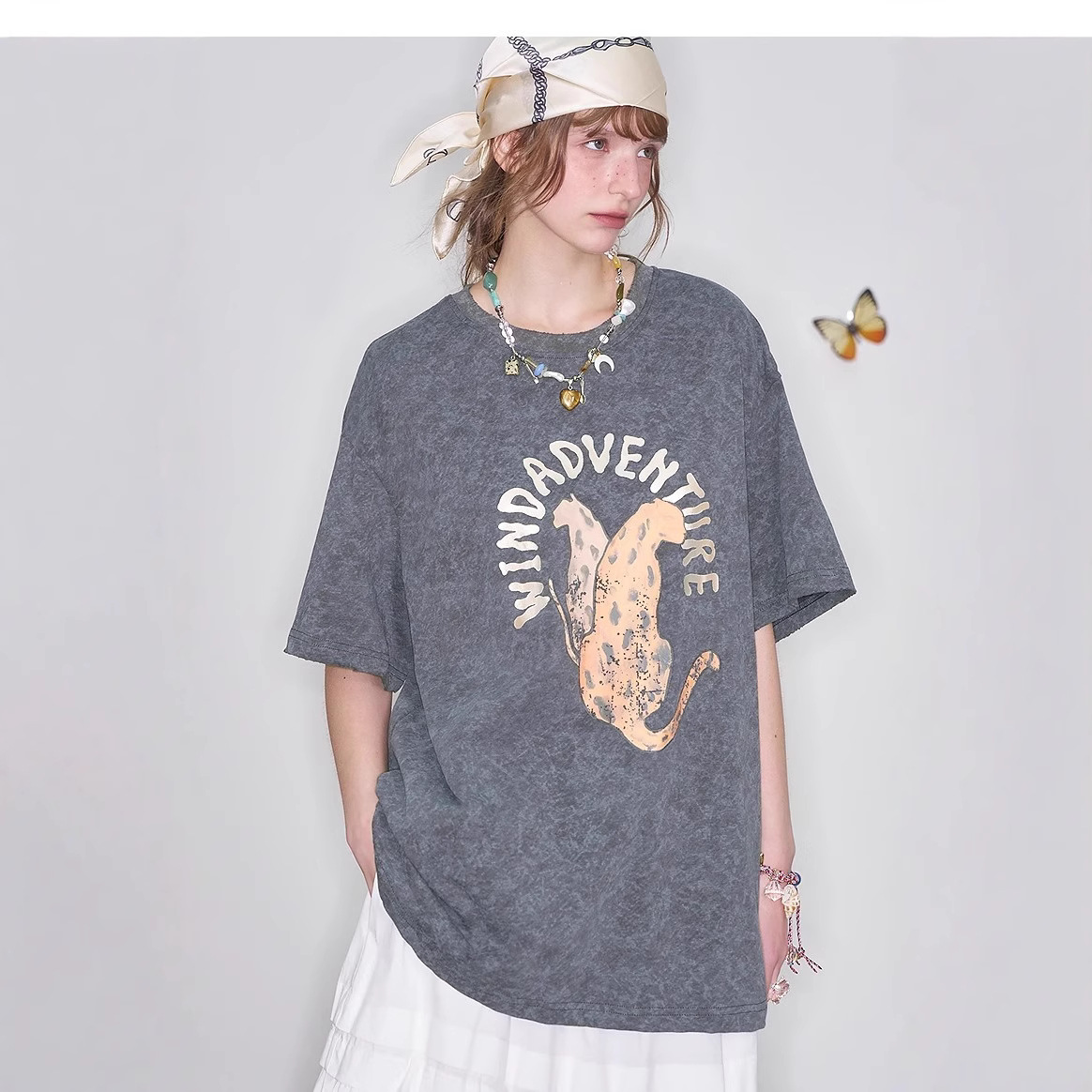 字母卡通印花短袖t恤女2025春季新款宽松休闲显瘦上衣
