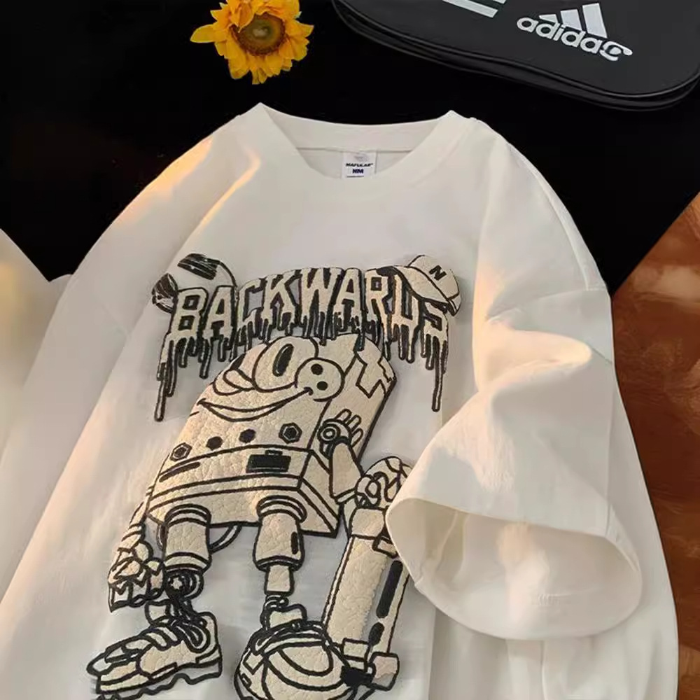 卡通印花高中生短袖t恤男夏季美式复古潮牌重磅宽松圆领半袖体恤