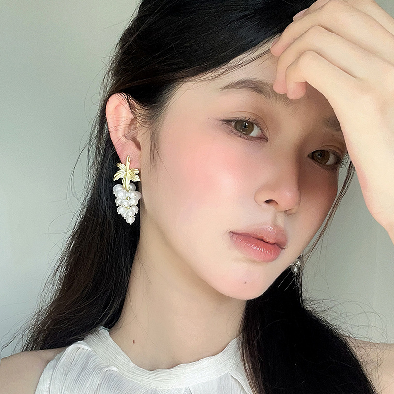 法式气质珍珠葡萄串耳环女 新款复古vintage中古耳饰夸张耳坠