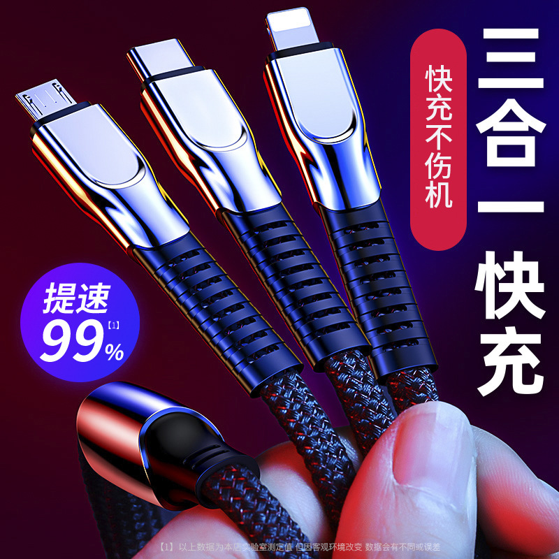 5A超级快充一拖三锌合金充电器线手机车载适用于苹果华为安卓小米
