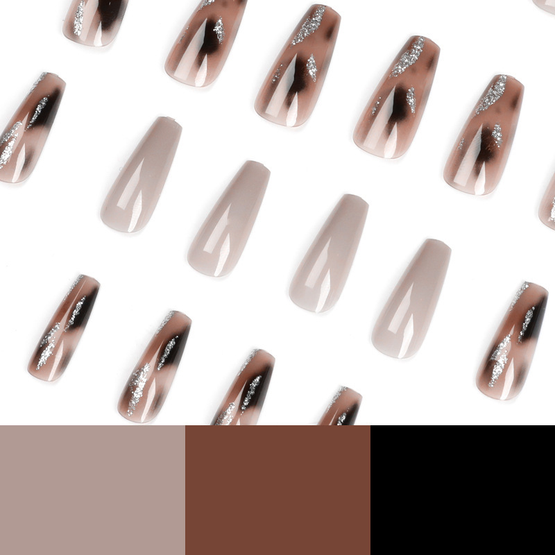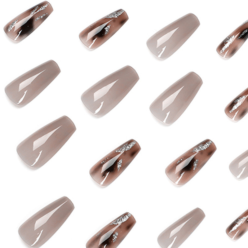 穿戴甲琥珀金箔晕染假指甲中长款芭蕾美拉德显白美甲专用甲片