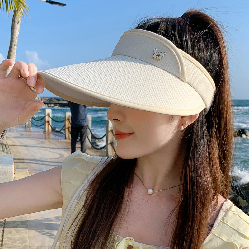 春夏新款帽子女时尚蝴蝶小金标空顶帽大帽檐遮阳帽防晒太阳帽