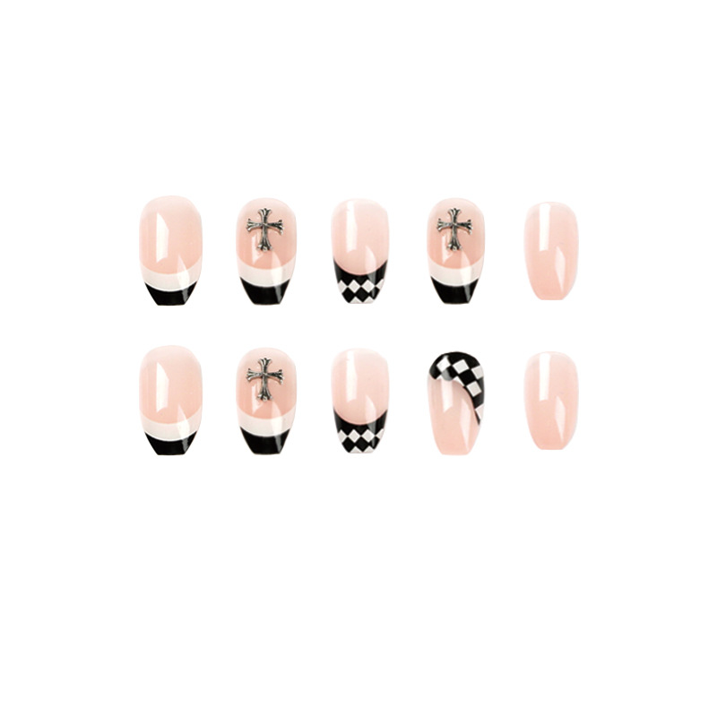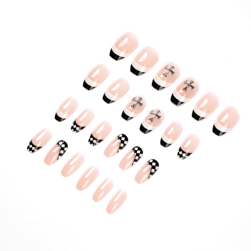 美甲甲片穿戴甲 法式黑白边棋盘格穿戴甲甜酷克罗心假指甲可拆卸