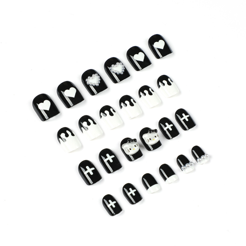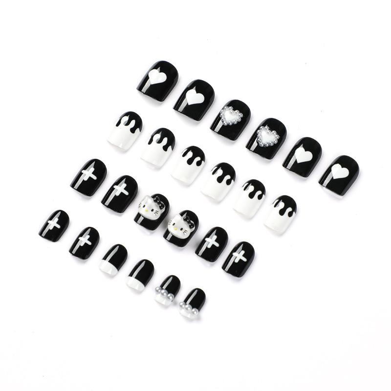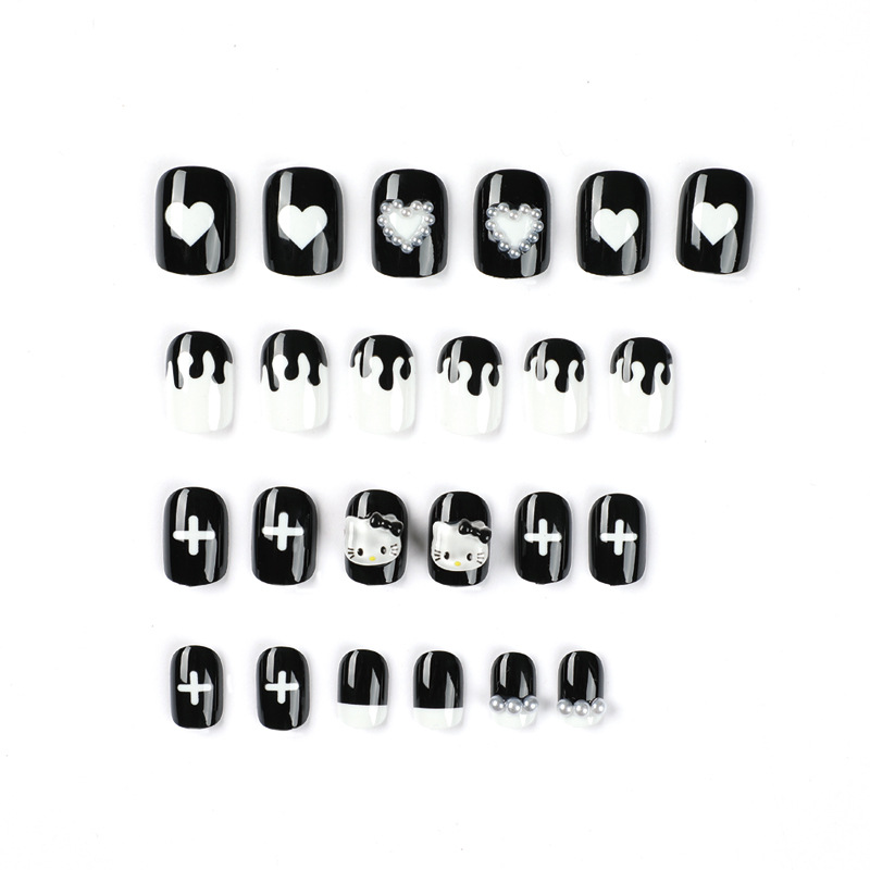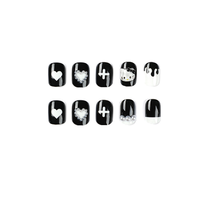 穿戴甲黑白凯蒂kt猫ins风穿戴甲珍珠穿戴甲美甲片成品可拆卸
