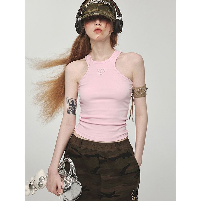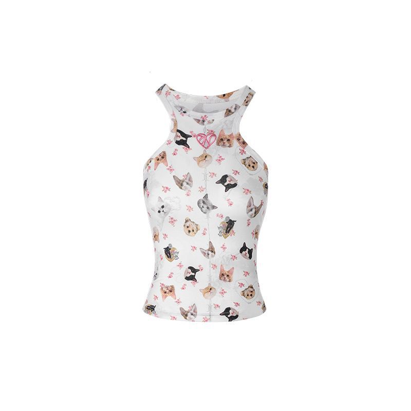 夏秋款基础刺绣印花动物工字背心小吊带外穿遮副乳无袖甜辣上衣女