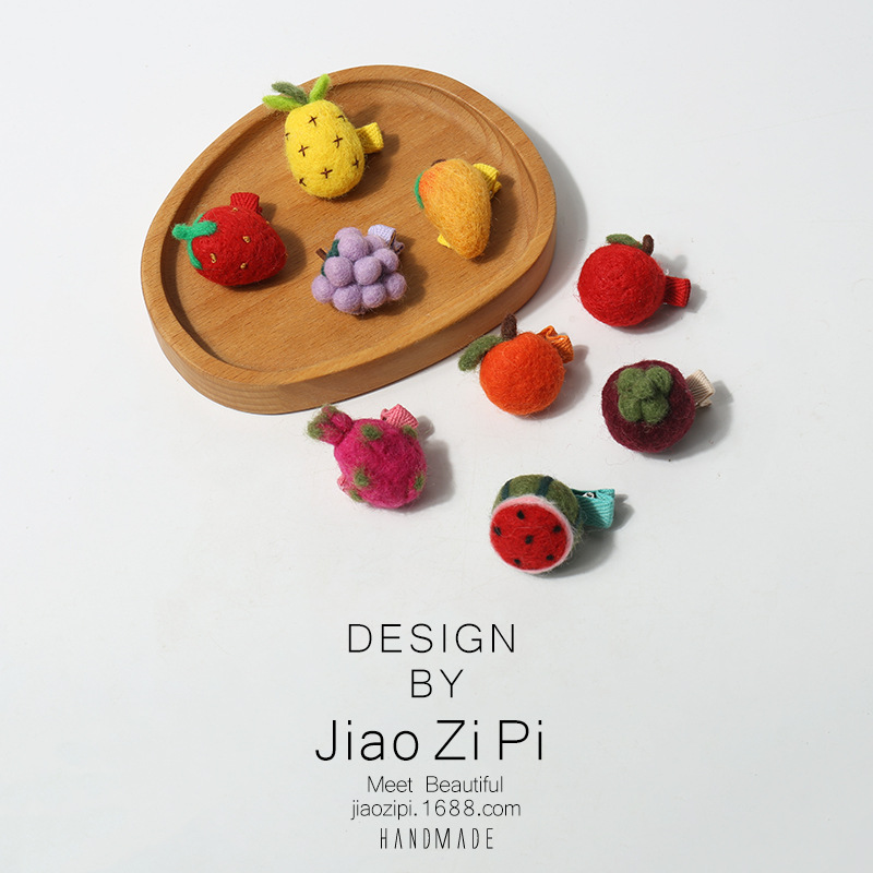 新款手工羊毛毡立体仿真水果发夹侧边刘海夹小夹子可爱童趣发饰