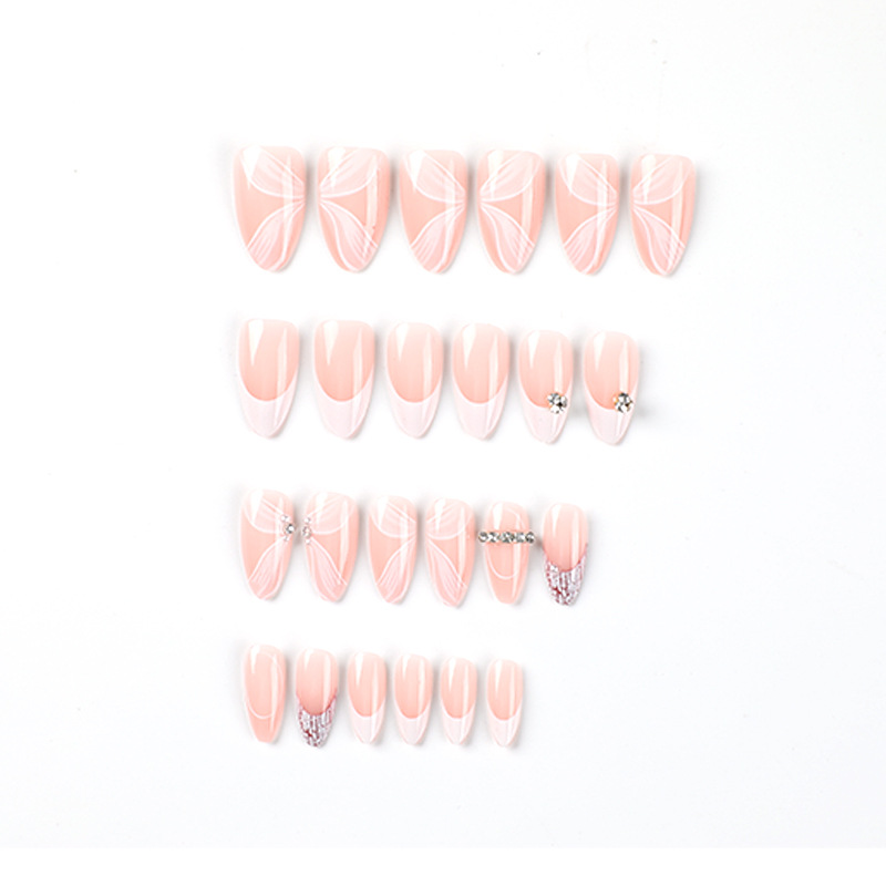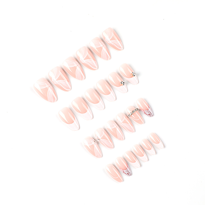 穿戴式指甲贴白色法式美甲贴片红白色小香风珍珠水钻花瓣甲片成品