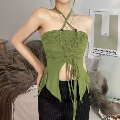 夏季新款露肩洋气时尚挂脖式吊带女短款修身显瘦设计感背心