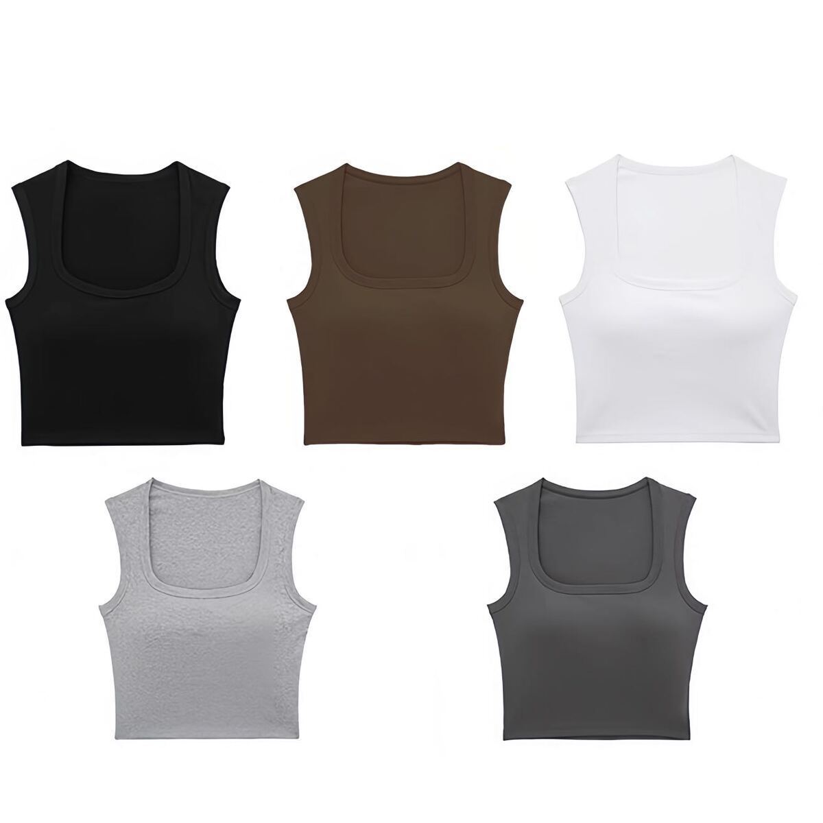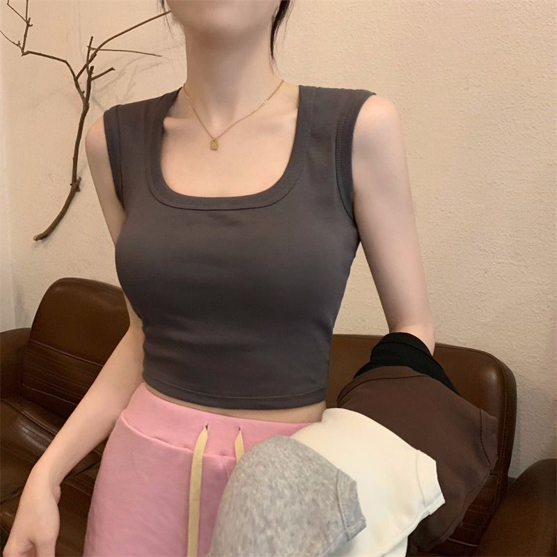 夏季新款大方领吊带背心通勤修身显瘦短款露脐裹胸锁骨性感上衣女