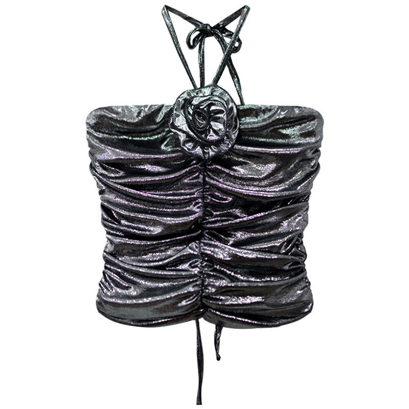 性感挂脖抹胸背心女夏甜辣妹修身显瘦花朵打底短款无袖小上衣