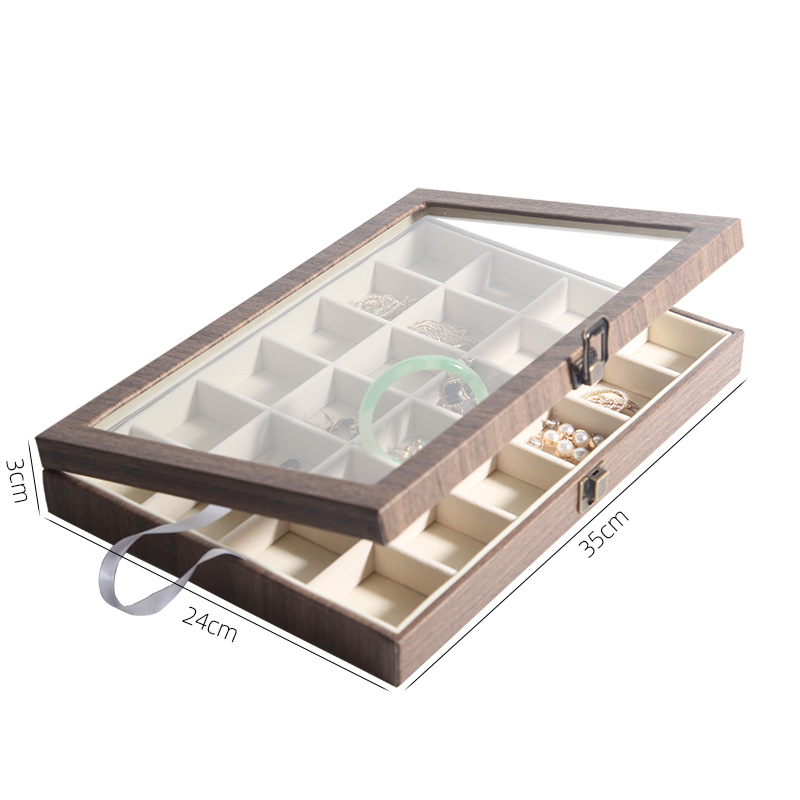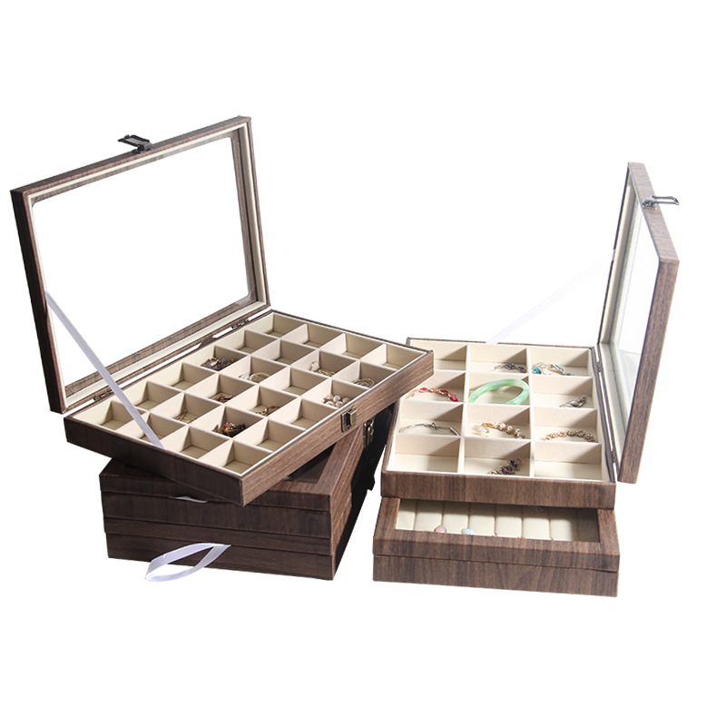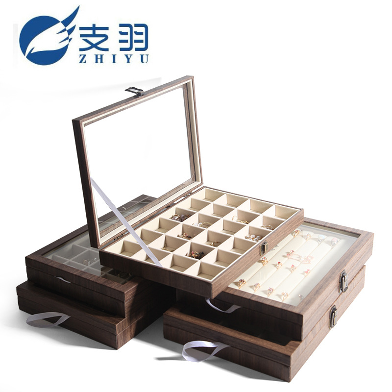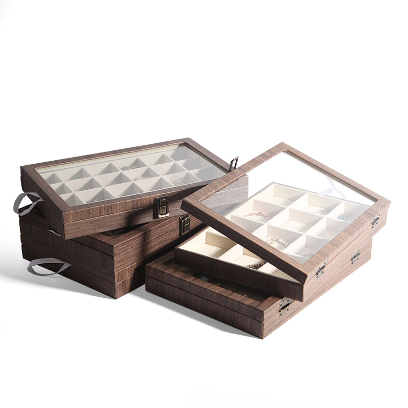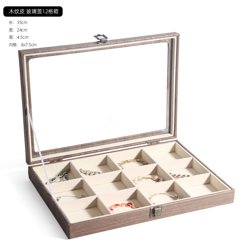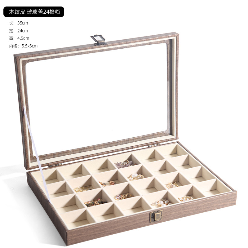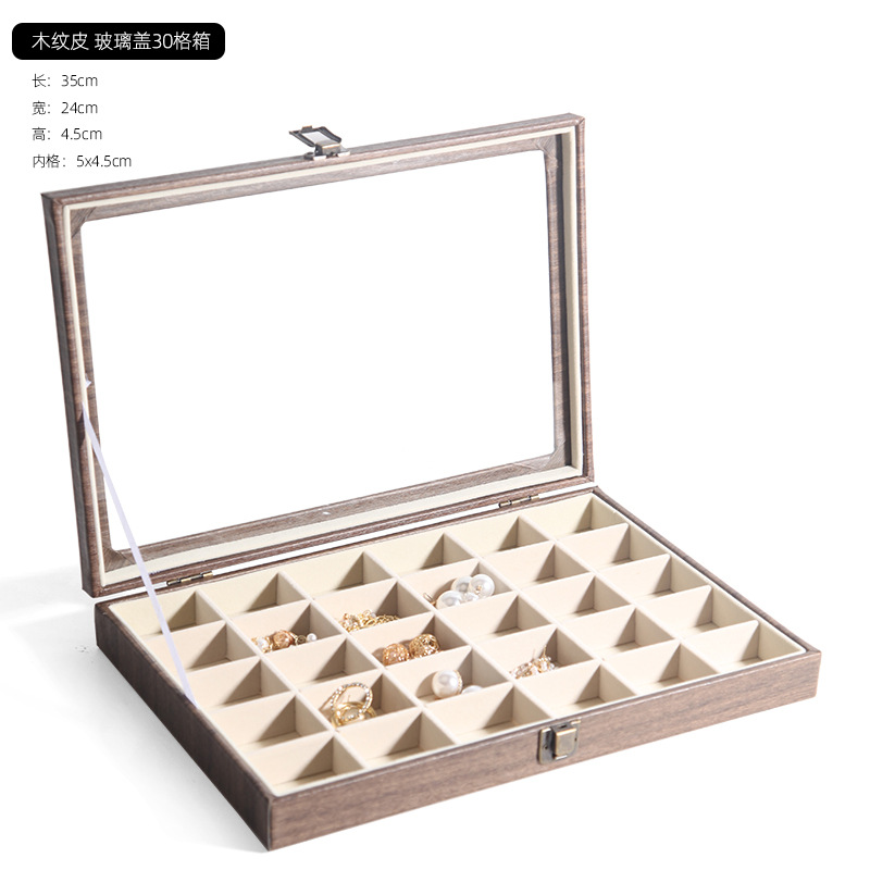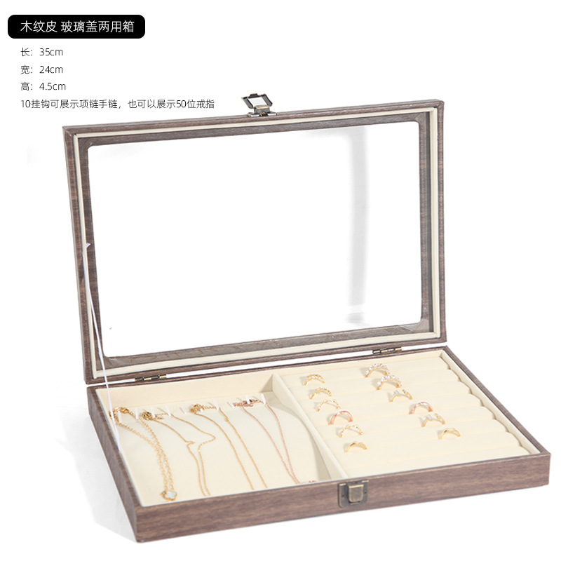 支羽 亚马逊新款木纹皮首饰盒珠宝箱箱戒指项链耳环展示盒收纳盒