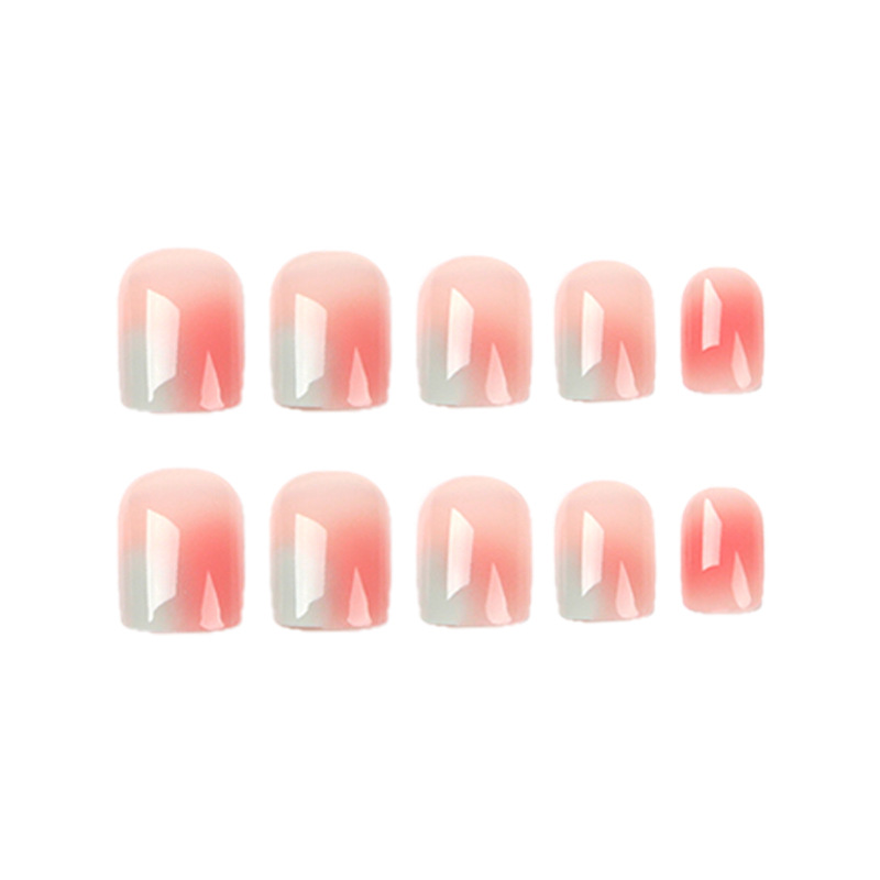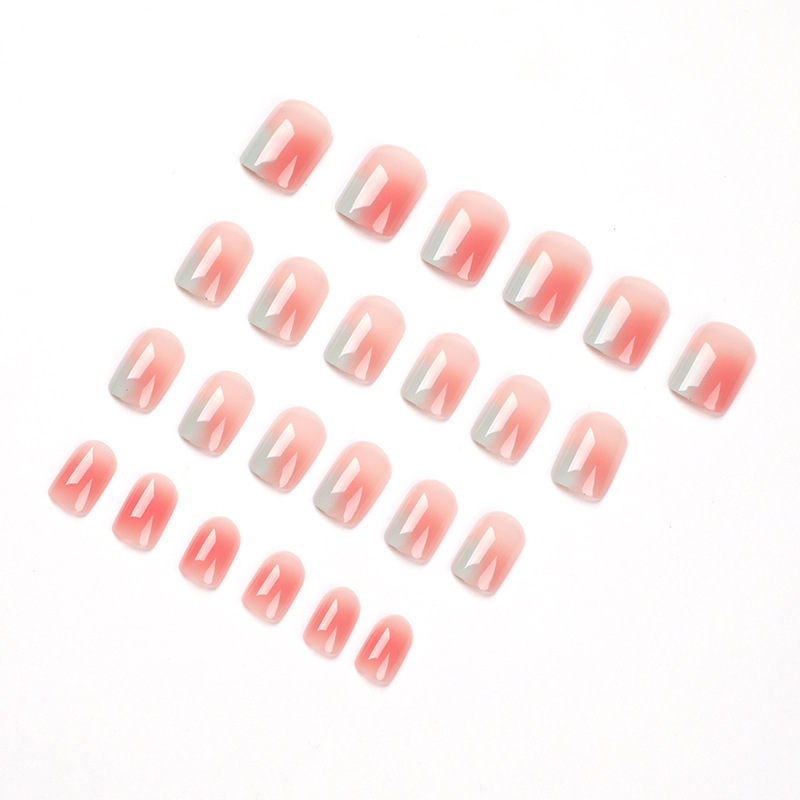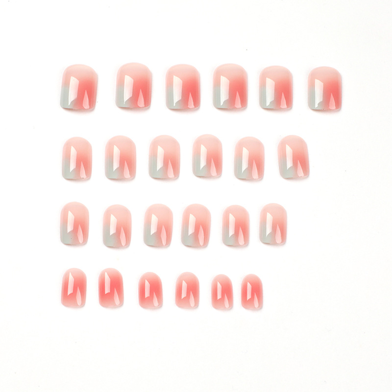 穿戴甲短款粉绿晕染穿戴甲夏季假指甲片批发穿戴式美甲