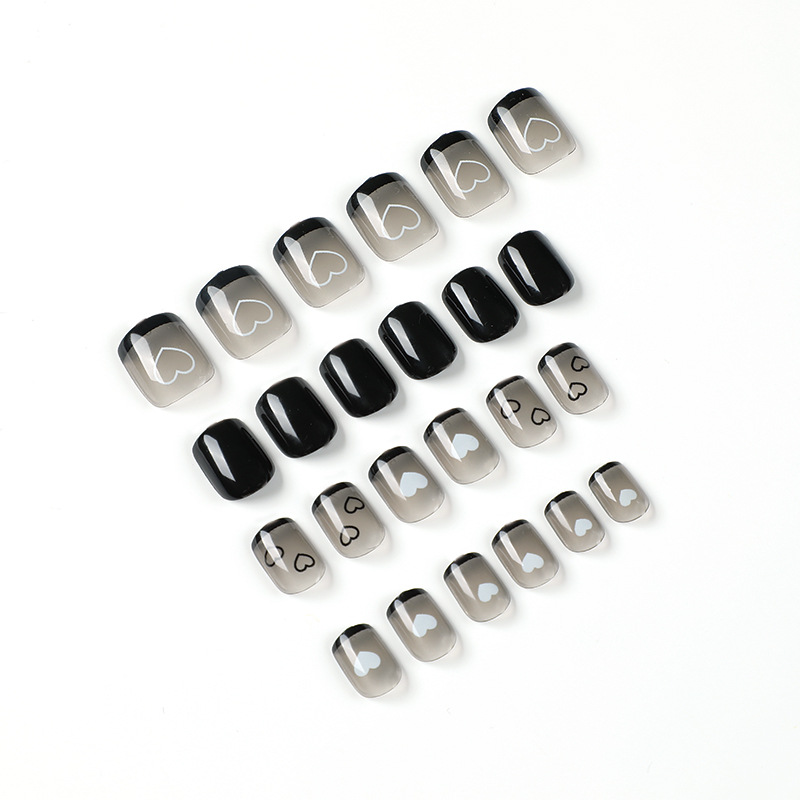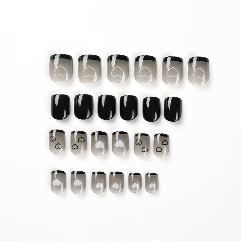 美甲穿戴甲法式黑边黑色渐变白色小爱心穿戴甲甲片批发美甲片