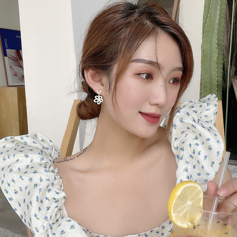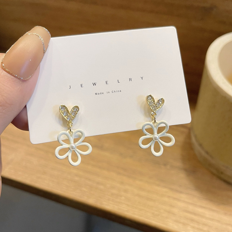 S925银针镂空小清新花朵耳钉简约镶钻爱心耳环夏季耳饰品5434
